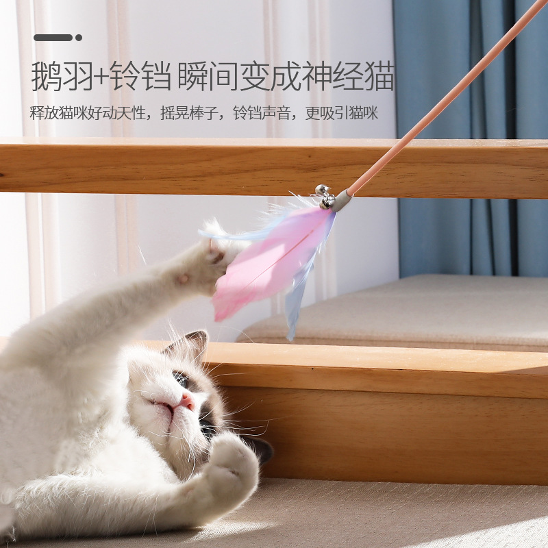 羽毛逗猫棒猫咪互动自嗨解闷玩具高韧性兔耳朵逗猫棒