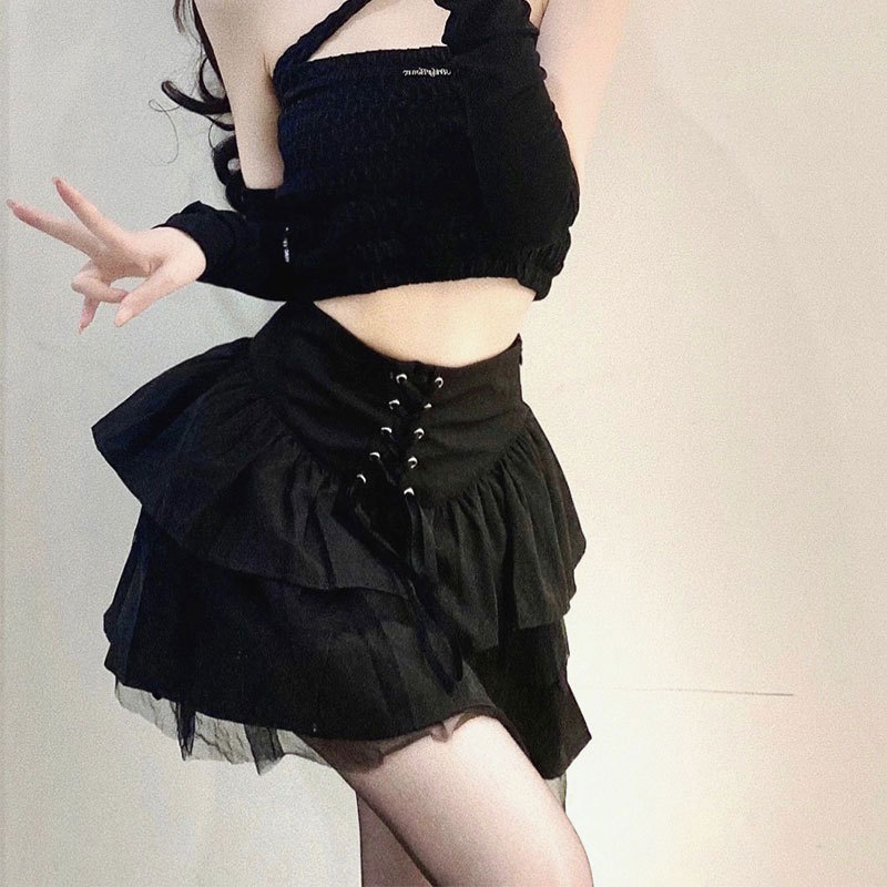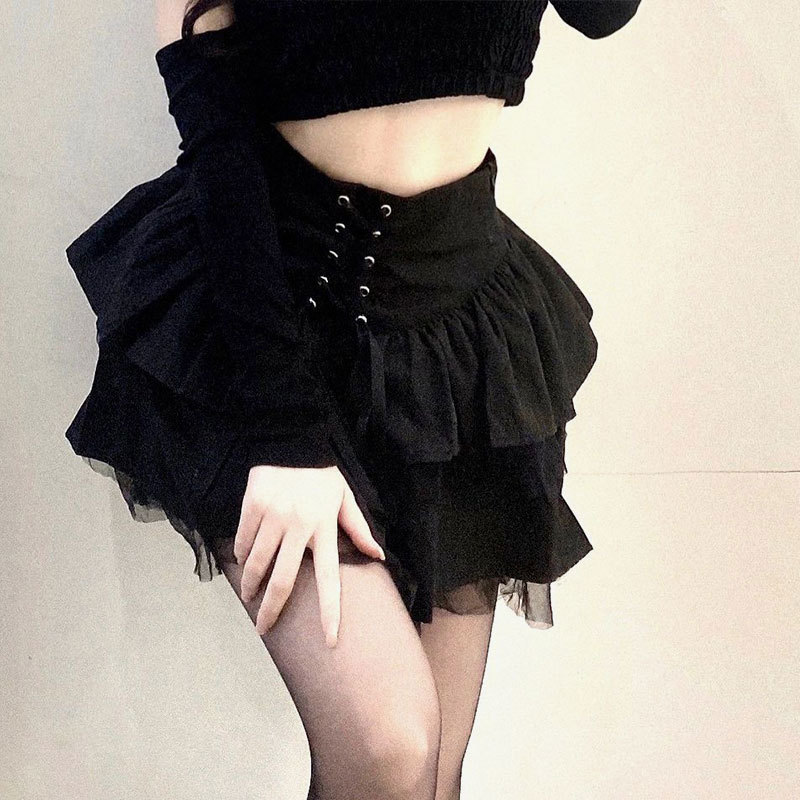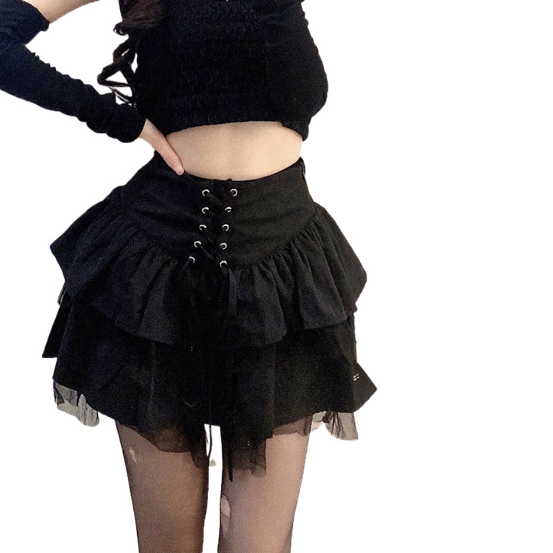 (后全松紧腰+绑带)网纱裙JK制服裙子a字蓬蓬半身裙春夏季短裙