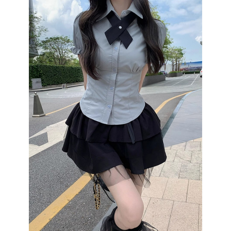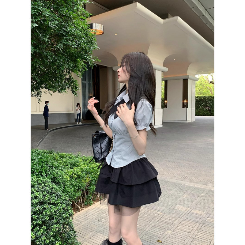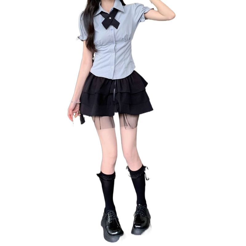 【后腰全松紧】夏季新款学院风暗黑系高腰修身显瘦收腰辣妹蓬蓬裙