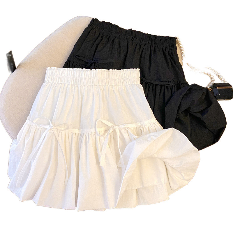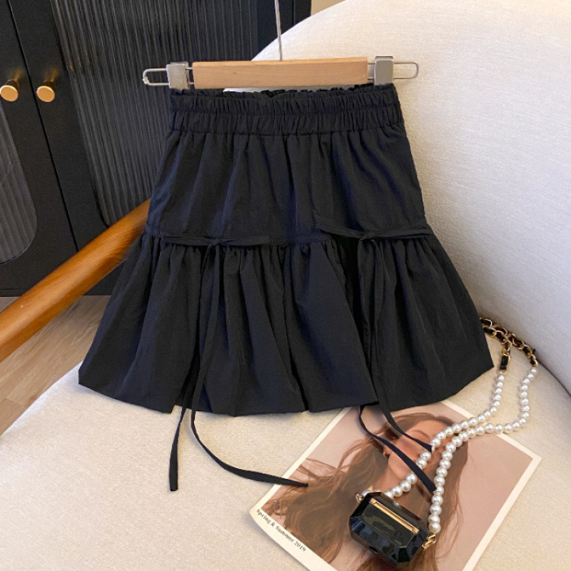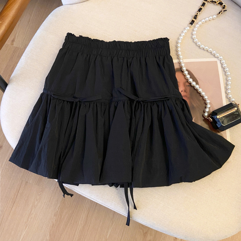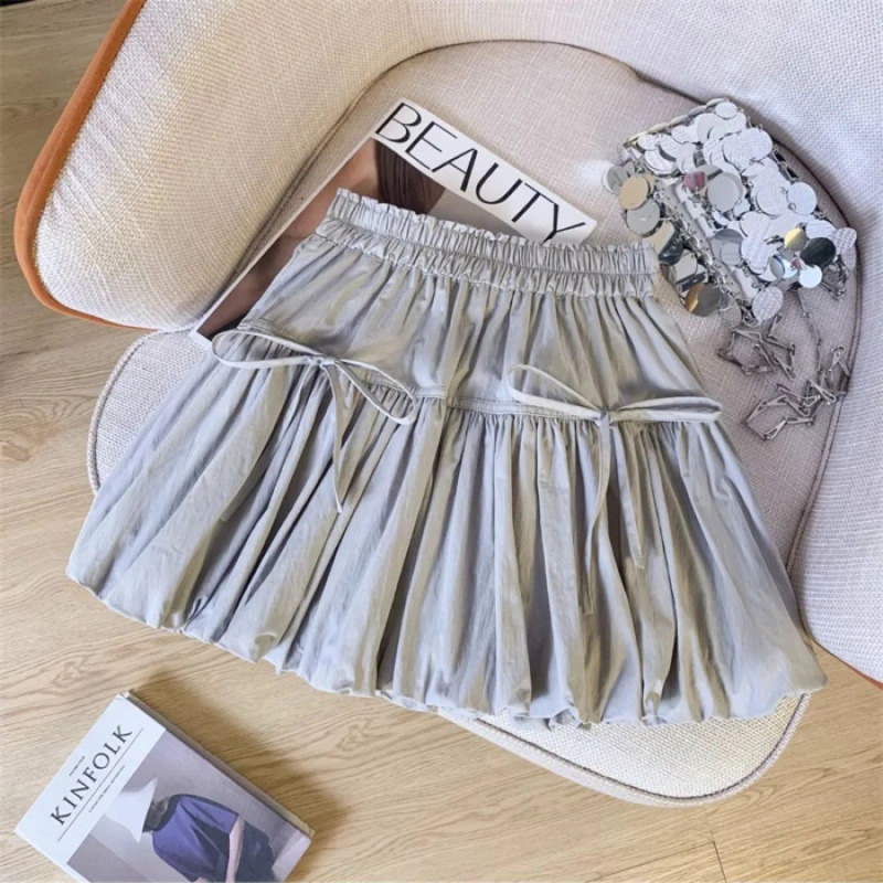 小个子压褶蓬蓬裙设计感松紧腰蝴蝶结绑带半身裙花苞甜酷灯笼短裙