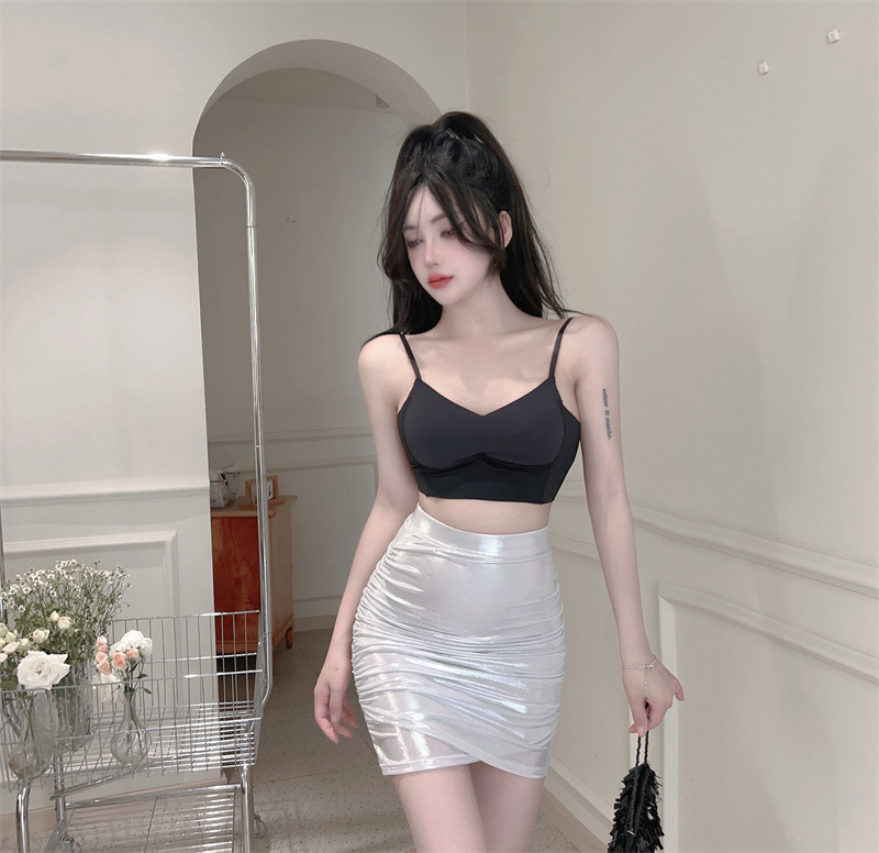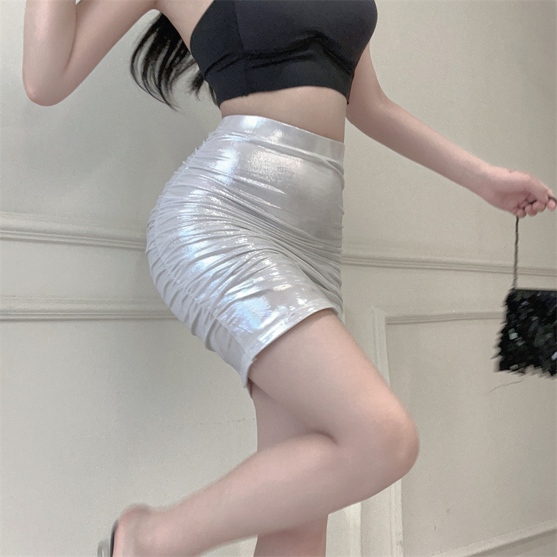 韩版性感银色亮面小众百搭辣妹包臀半身裙女