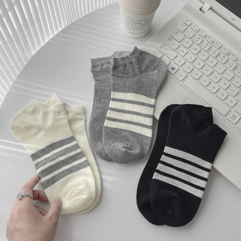 日系潮牌四杠条纹船袜黑白灰AB脚短袜男女ins潮低帮浅口短筒袜子