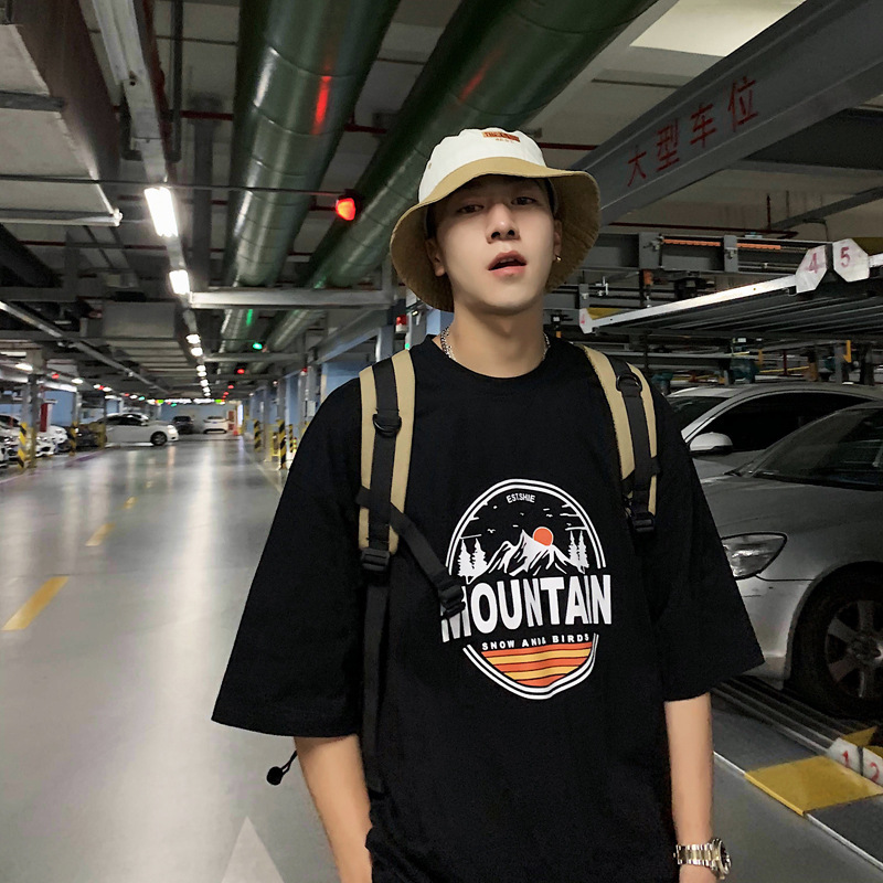 原宿风短袖男潮牌潮流ins港风t恤宽松百搭抖音夏季学生帅气上衣服