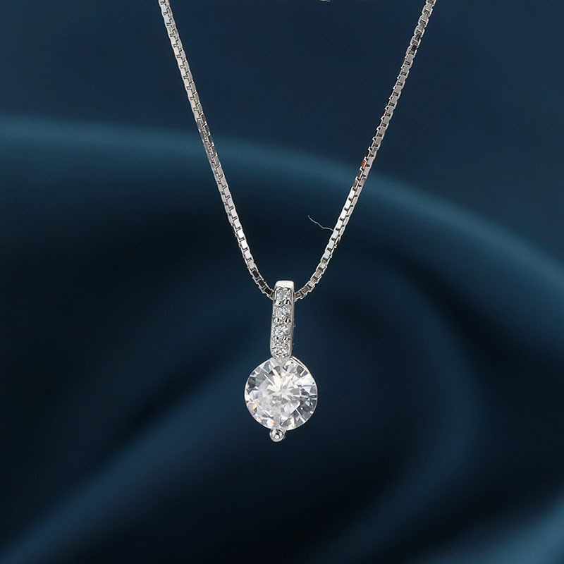 S925纯银单钻项链女韩版轻奢细闪盒子链闪钻锁骨链简约气质吊坠女