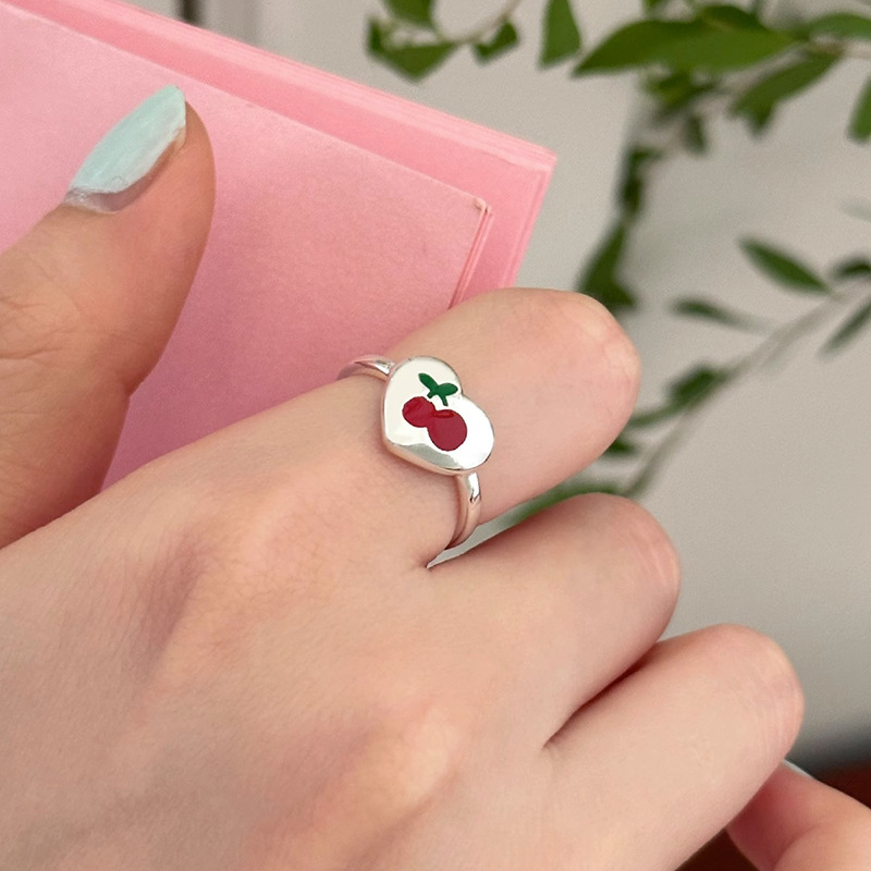 爱心樱桃戒指女简约气质韩版学生心形开口可调节指环夏季新品手饰