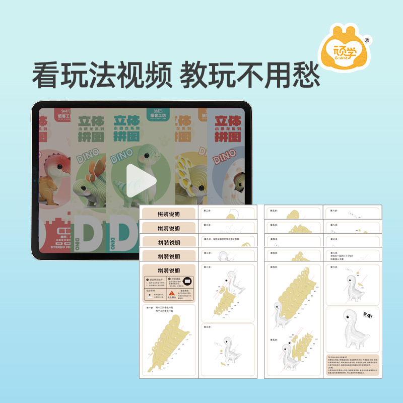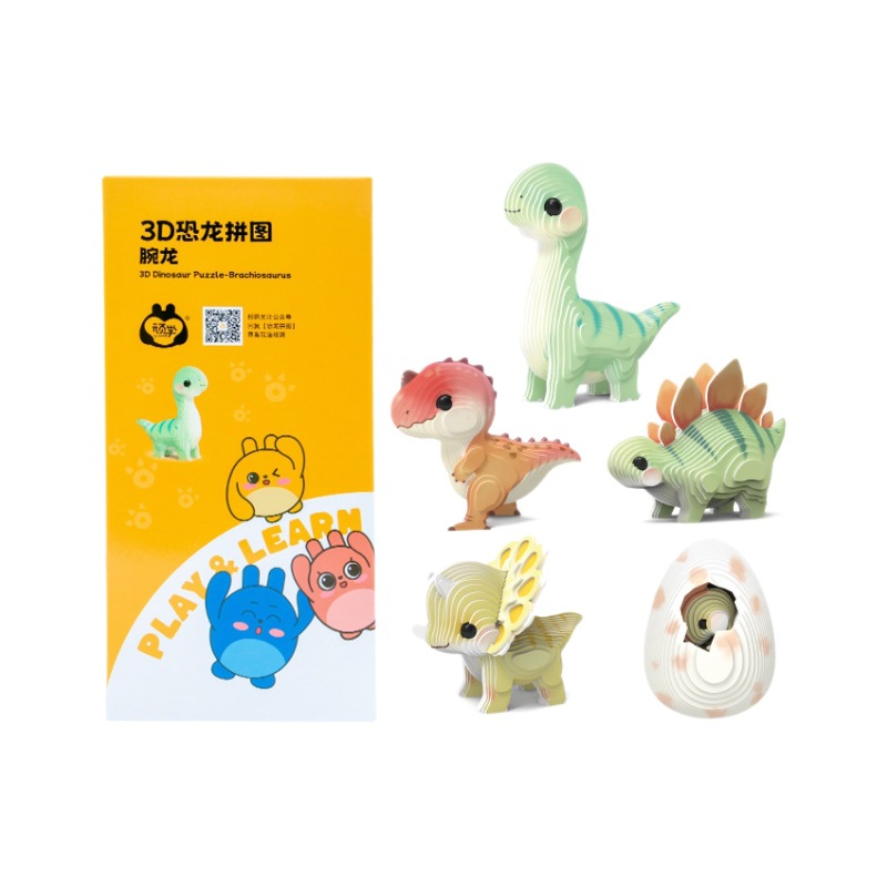 顽学3D恐龙纸质立体拼图儿童创意DIY益智玩具早教手工拼装卡片6岁