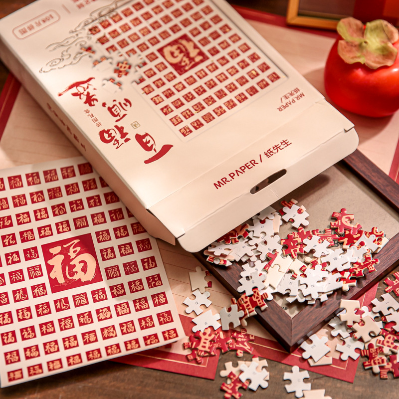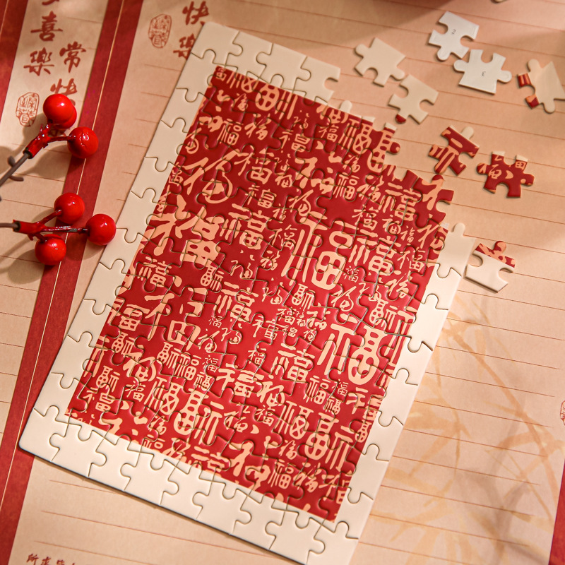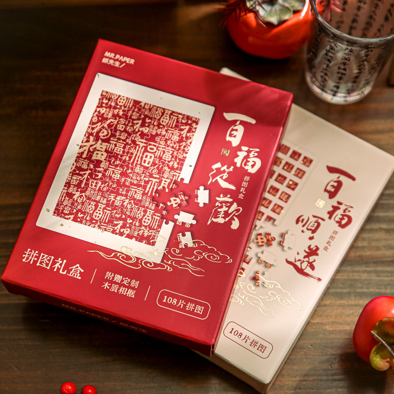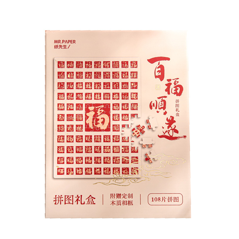 百福胜意祝福字拼图带相框礼盒中国古风文字生日新年礼物桌面摆件