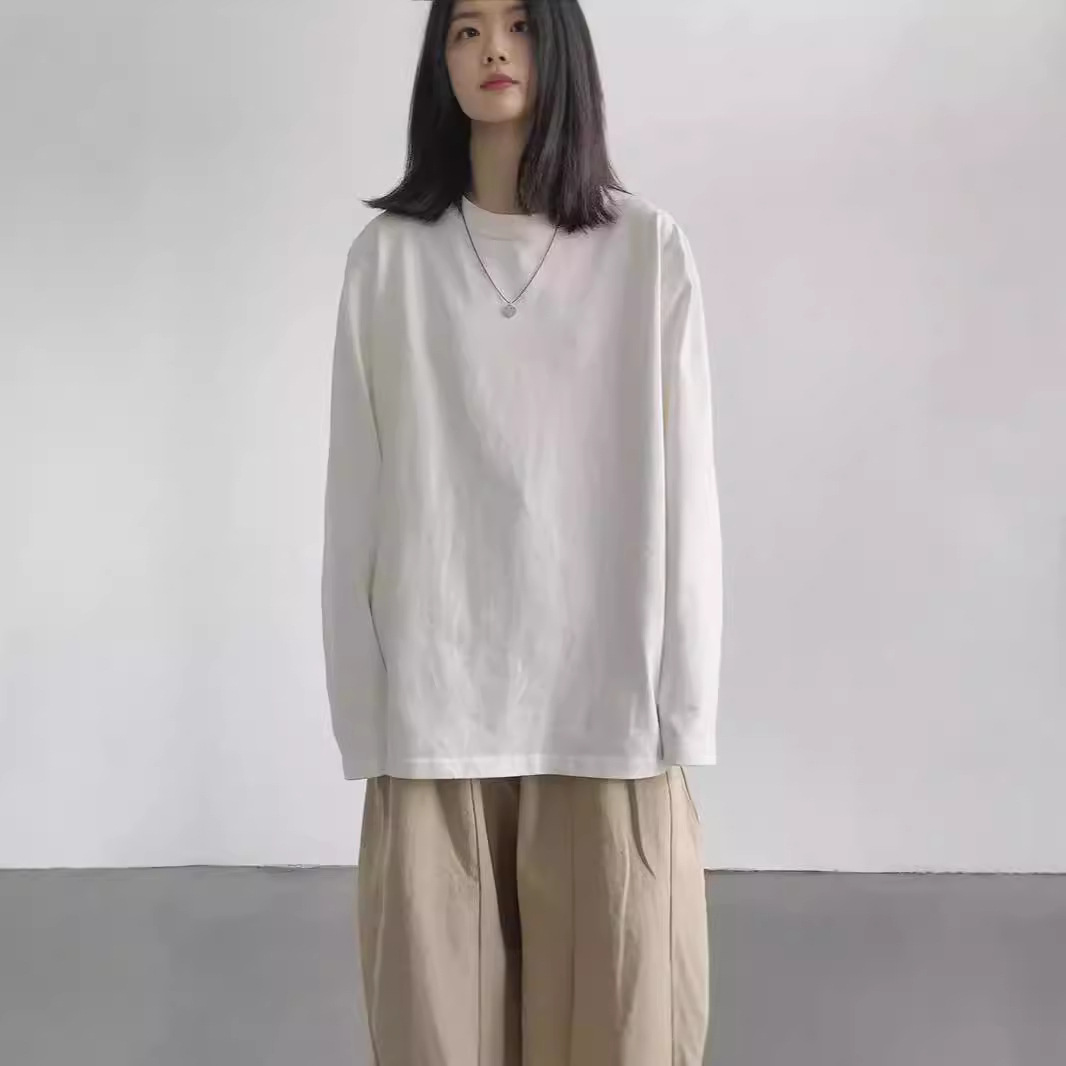 大码胖mm纯棉白色t恤女长袖上衣宽松显瘦春秋薄款内搭打底衫ins潮