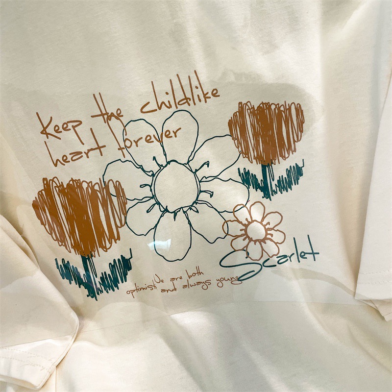 美式复古印花纯棉短袖t恤女夏季情侣宽松胖妹妹mm设计感上衣ins潮