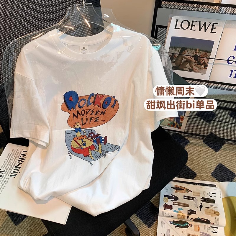 垂感显瘦莫代尔宽松T恤显白字母印花圆领薄款凉爽百搭短袖上衣女