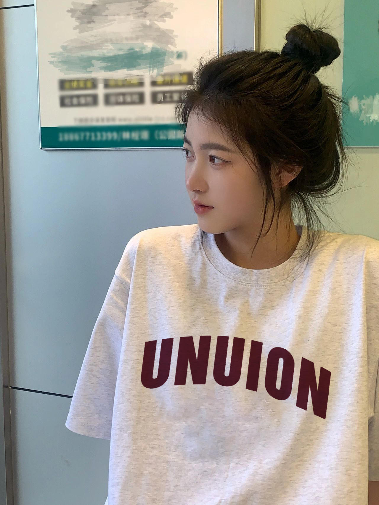 白灰色正肩短袖t恤女oversize宽松美式复古小众设计感半袖上衣夏