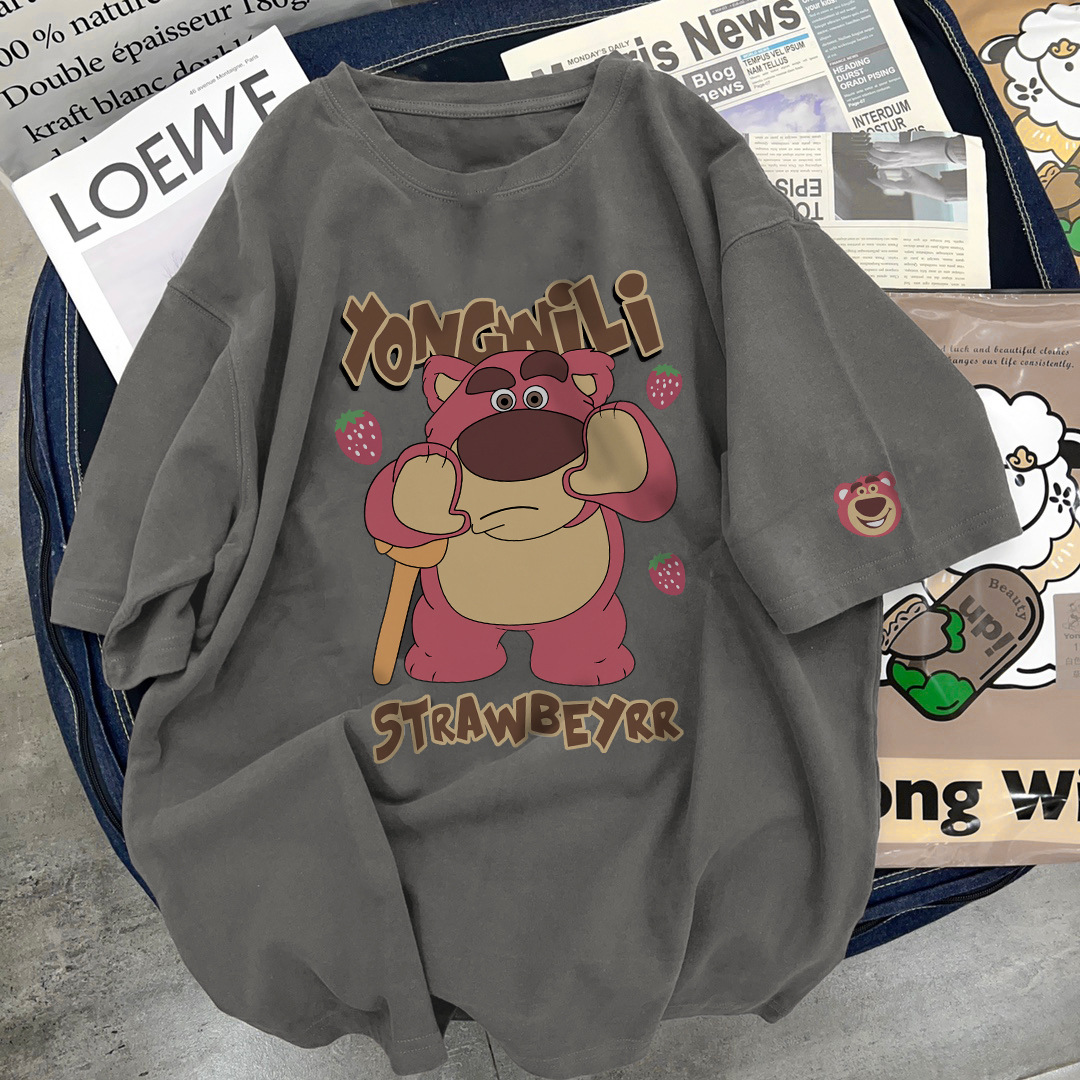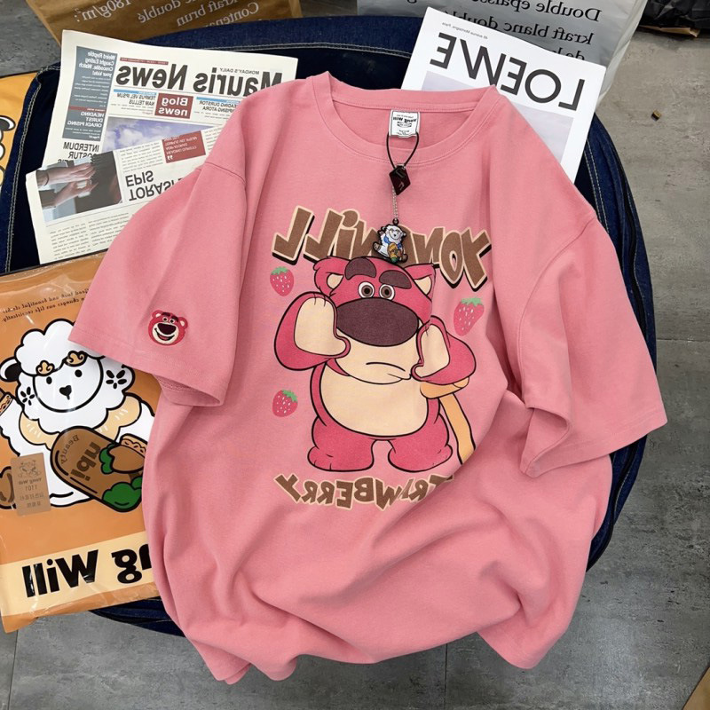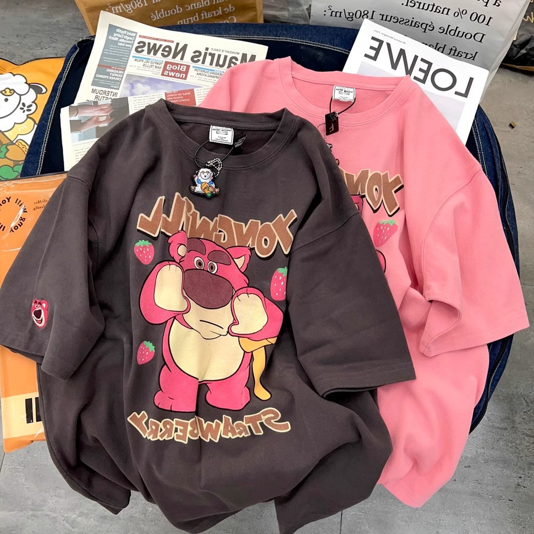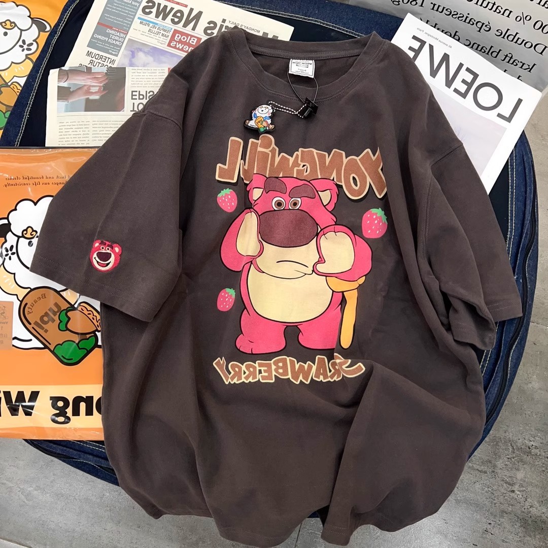 纯棉小熊短袖t恤女春夏季新款宽松显瘦大码半袖oversize上衣