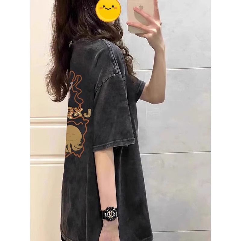 圆领火龙果正肩短袖t恤女美式字母宽松显瘦慵懒休闲百搭夏季上衣