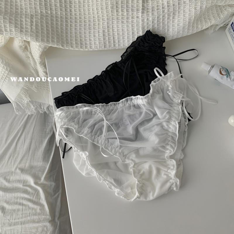 白色蕾丝内裤少女夏季薄款透视网纱性感网眼中低腰三角短裤