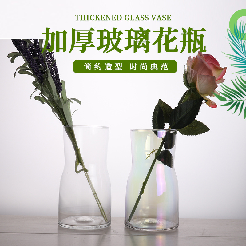 现代简约渐变七彩花瓶干花客厅水培容器高硼硅玻璃装饰花瓶