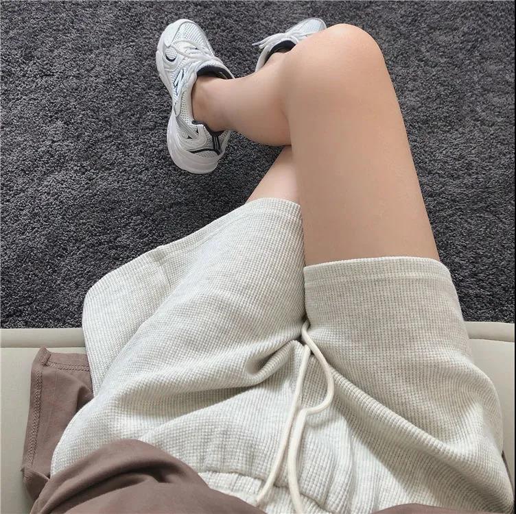 夏/透气凉快巨舒适 华夫格面料短裤女高腰a字阔腿热裤学生女