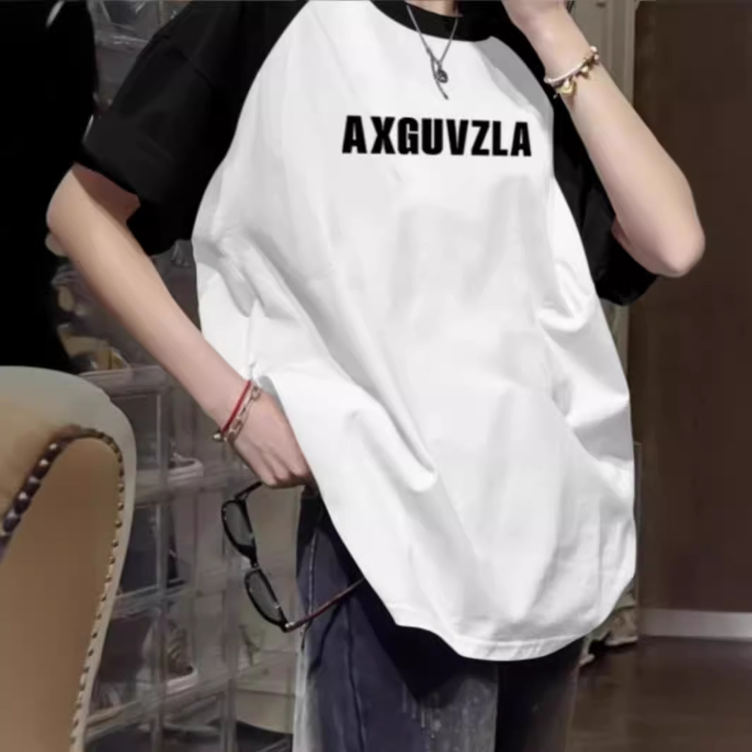 夏季新款印花字母半袖圆领街头休闲宽松情侣装短袖男女DT288