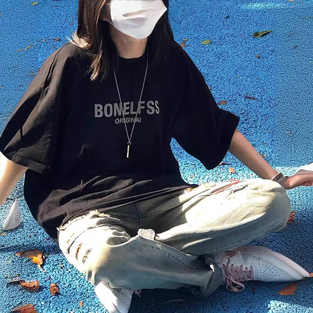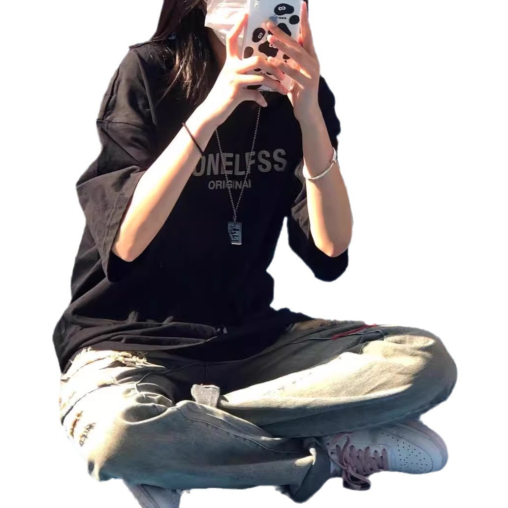 复古港味chic短袖t恤女夏季新款潮牌ins学生圆领宽松纯棉上衣