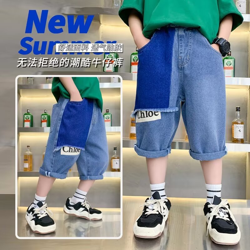男童夏季拼接牛仔裤新款儿童五分裤子大童休闲中裤潮牌帅跨境