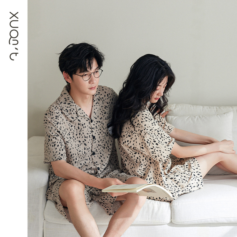 【凉感型】情侣睡衣夏季女短袖薄款梭织棉纱布纯棉男家居服两件套