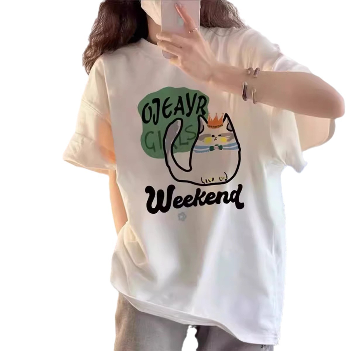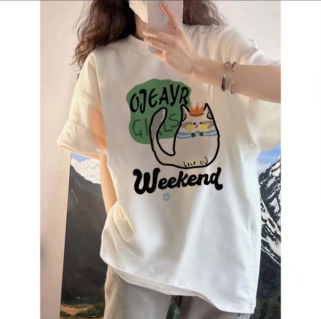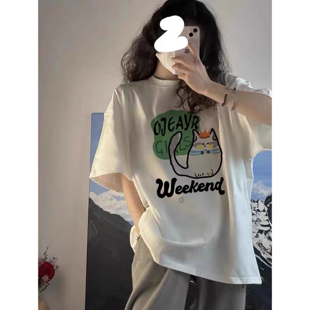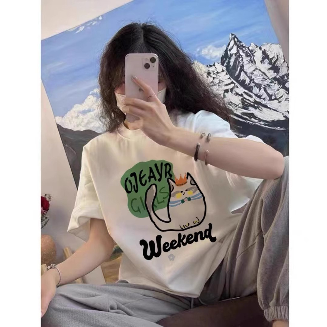 重磅纯棉短袖t恤女ins潮印花oversize宽松百搭港味chic半袖上衣夏