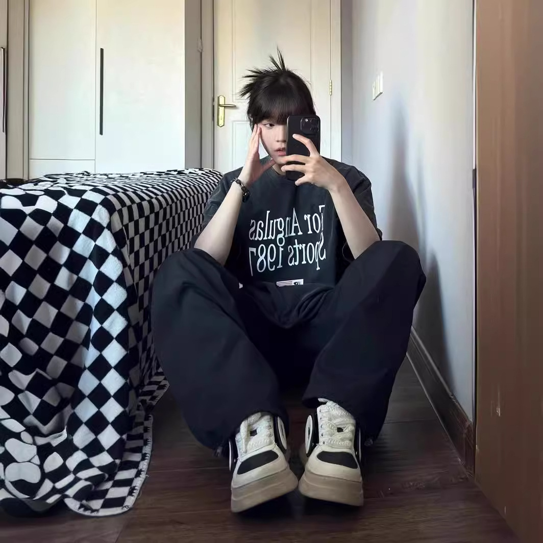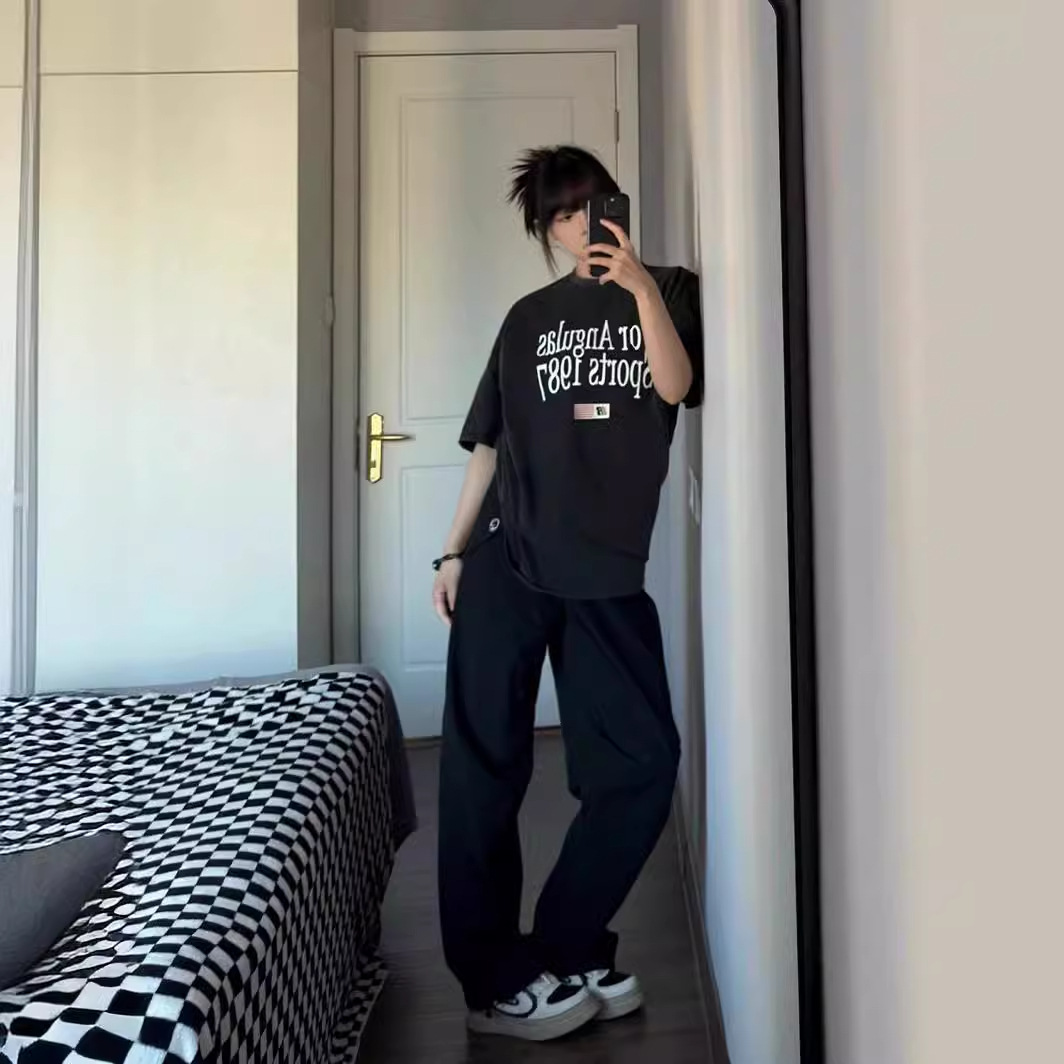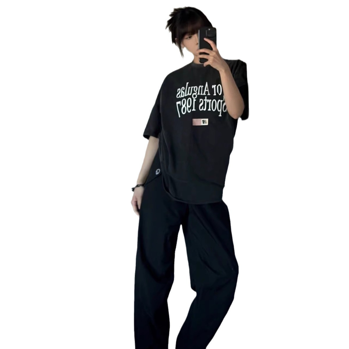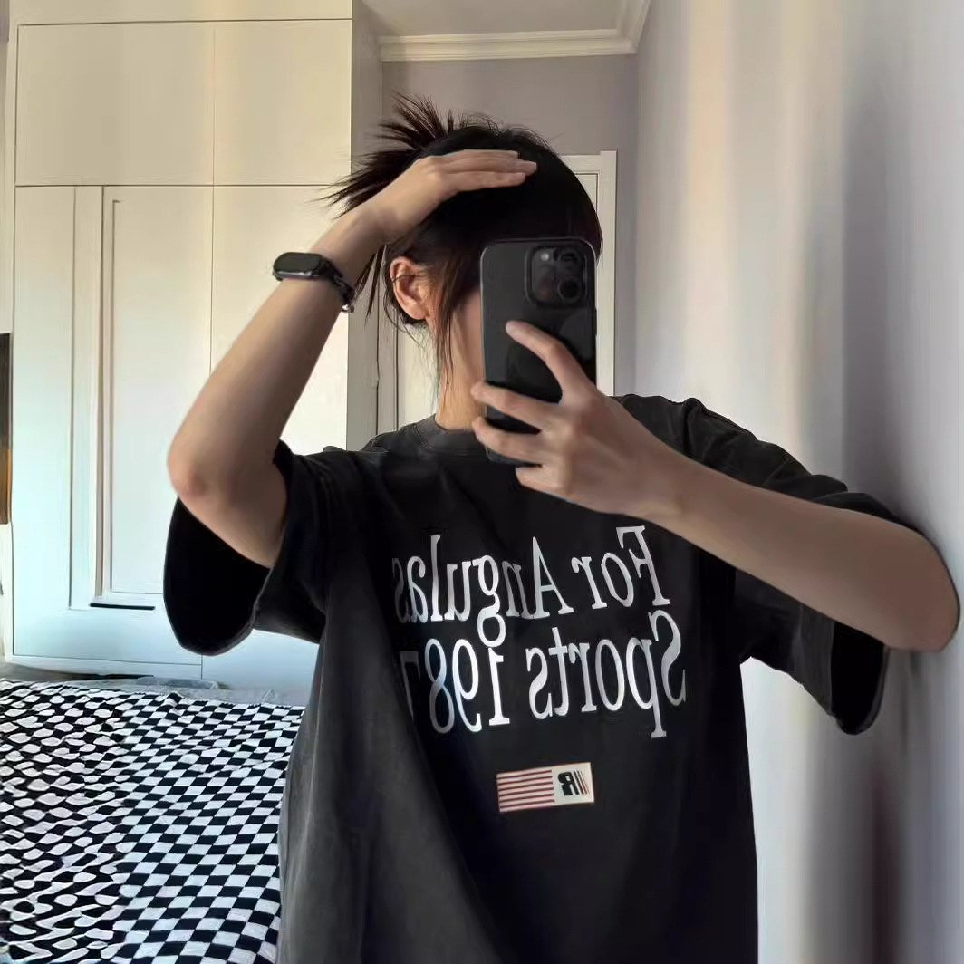 美式复古字母印花运动情侣短袖t恤男女夏季宽松重磅纯棉潮牌体恤