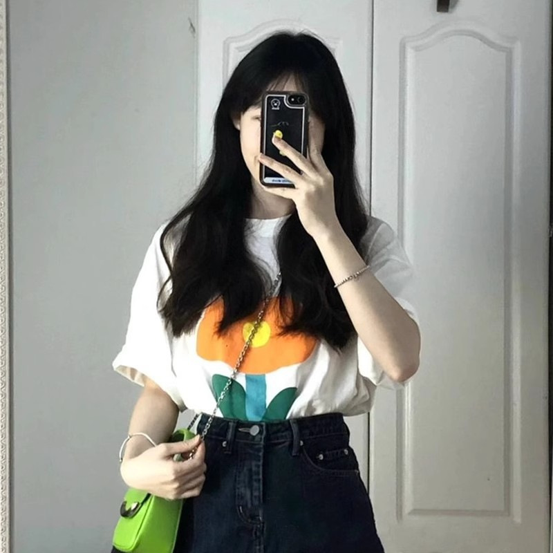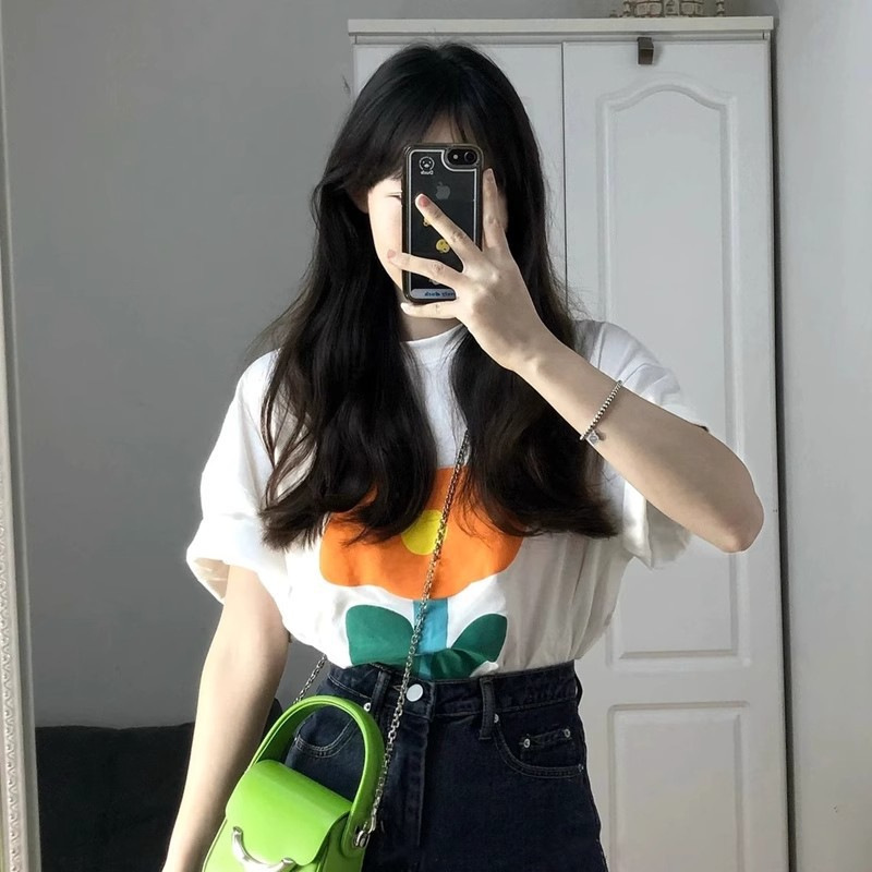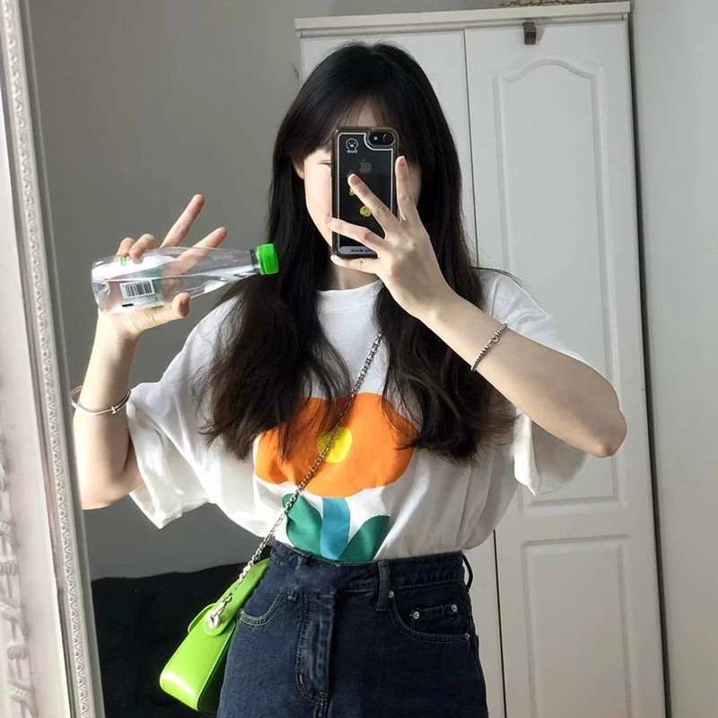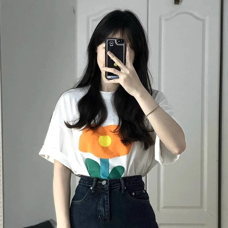 纯棉日系花朵设计感短袖t恤女ins潮牌夏季宽松韩版港味chic上衣服