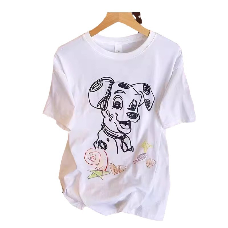 纯棉美式小个子可爱涂鸦印花短袖t恤男女潮牌宽松设计感小众上衣
