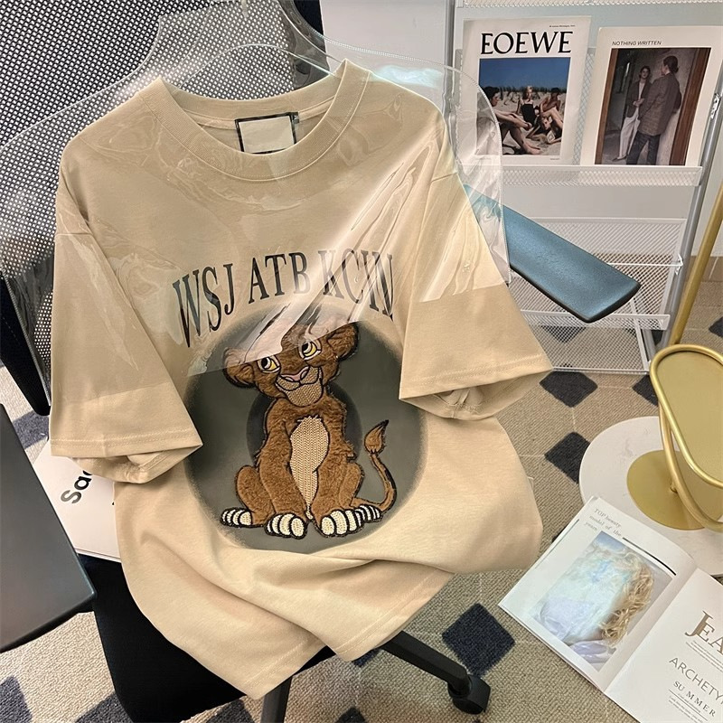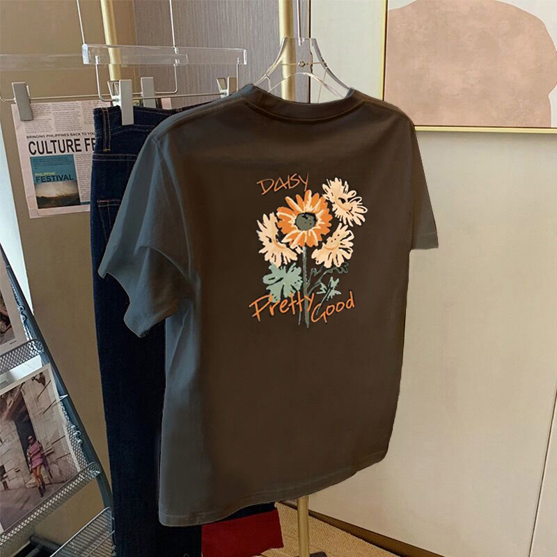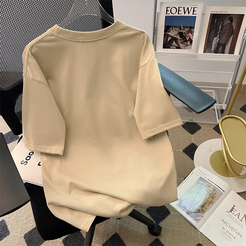 纯棉重磅设计感短袖t恤女夏季新款宽松半袖印花oversize上衣