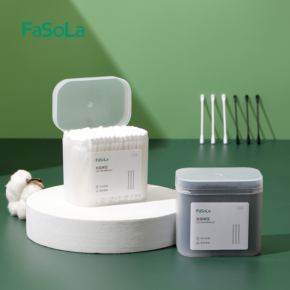 FaSoLa婴儿棉签掏耳勺小双头新生儿童鼻屎细螺旋勺头宝宝棉棒盒装