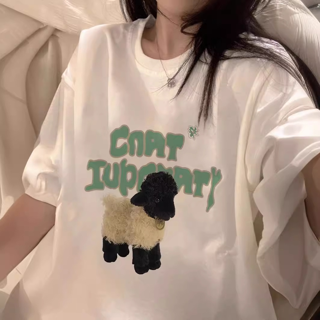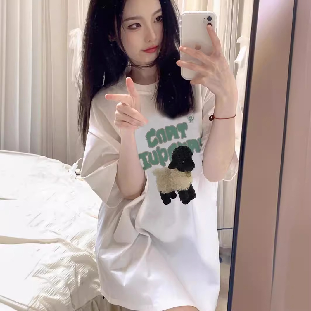 洋气印花圆领短袖夏季新款时尚T恤女宽松半袖体恤打底衫上衣