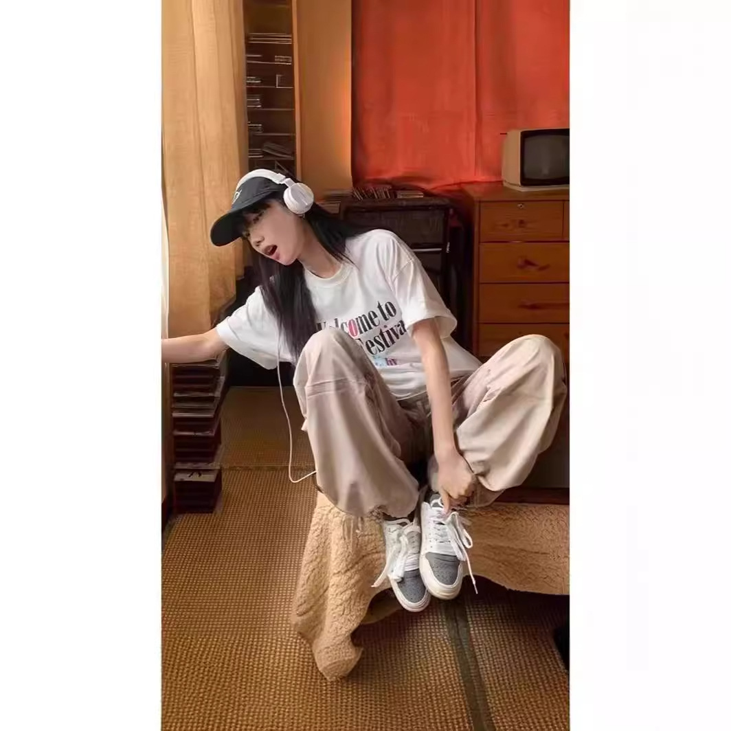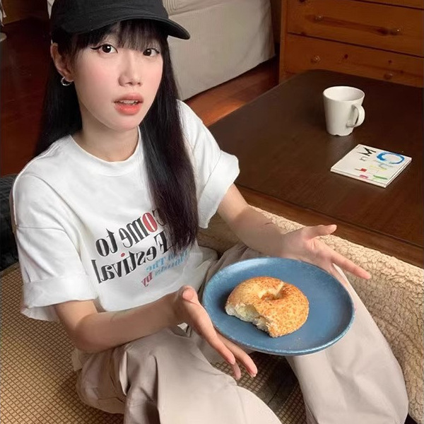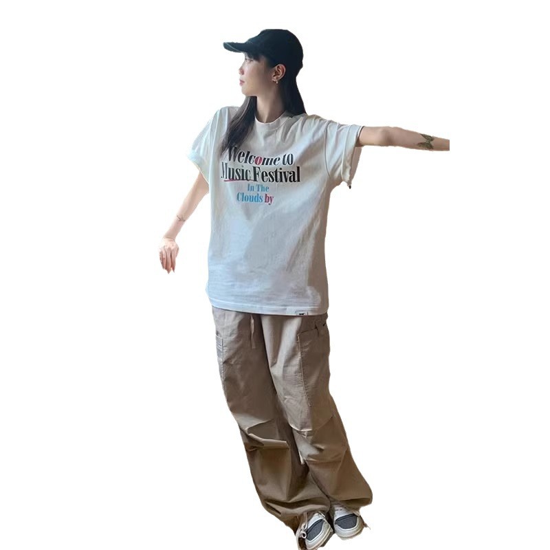 国潮oversize短袖男女夏季简约印花情侣t恤宽松重磅纯棉体恤上衣