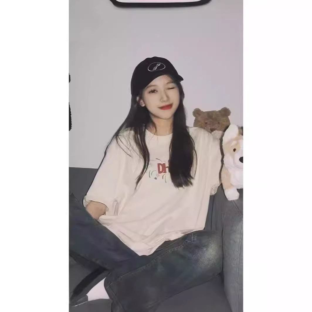 缎面醋酸真丝春夏季女装新款印花韩版宽松上衣短袖t恤