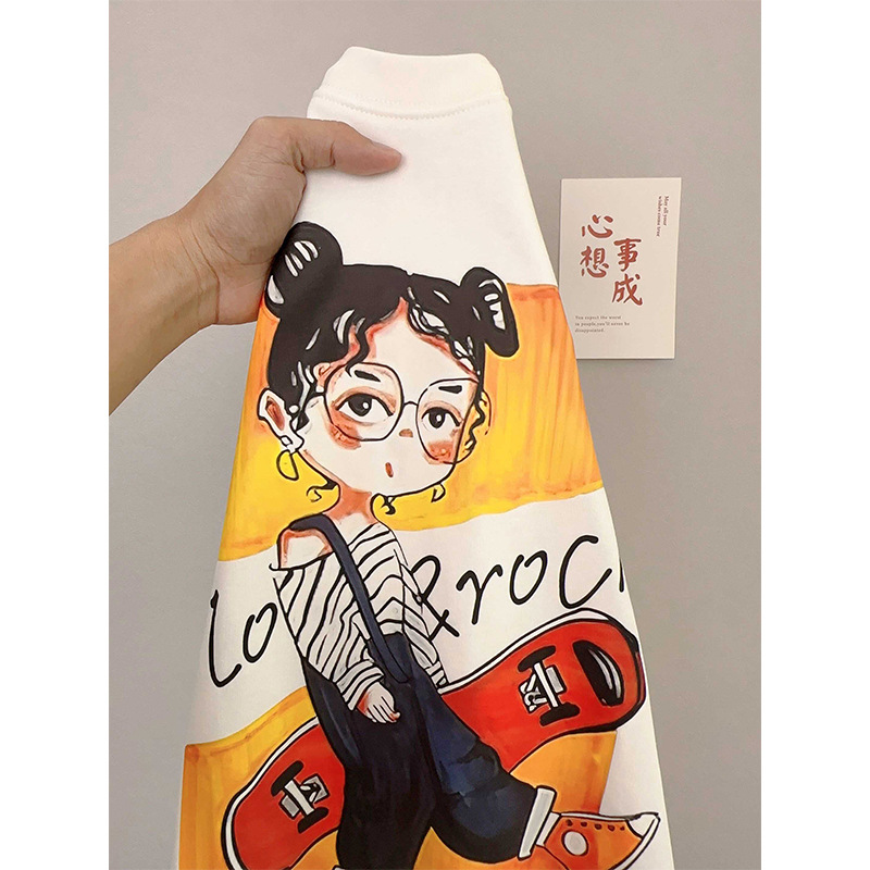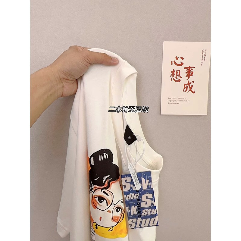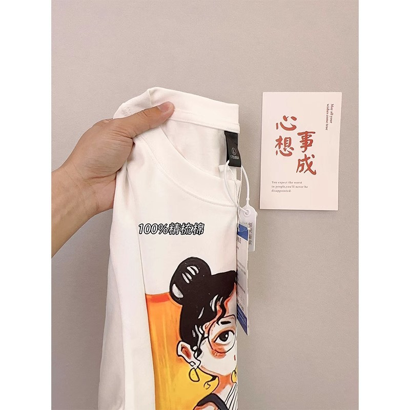 纯棉白色印花他恤设计感短袖t恤女夏季宽松韩版学生半袖上衣体恤