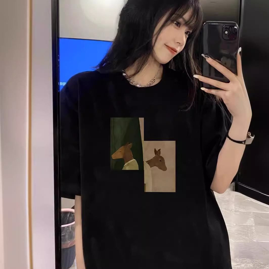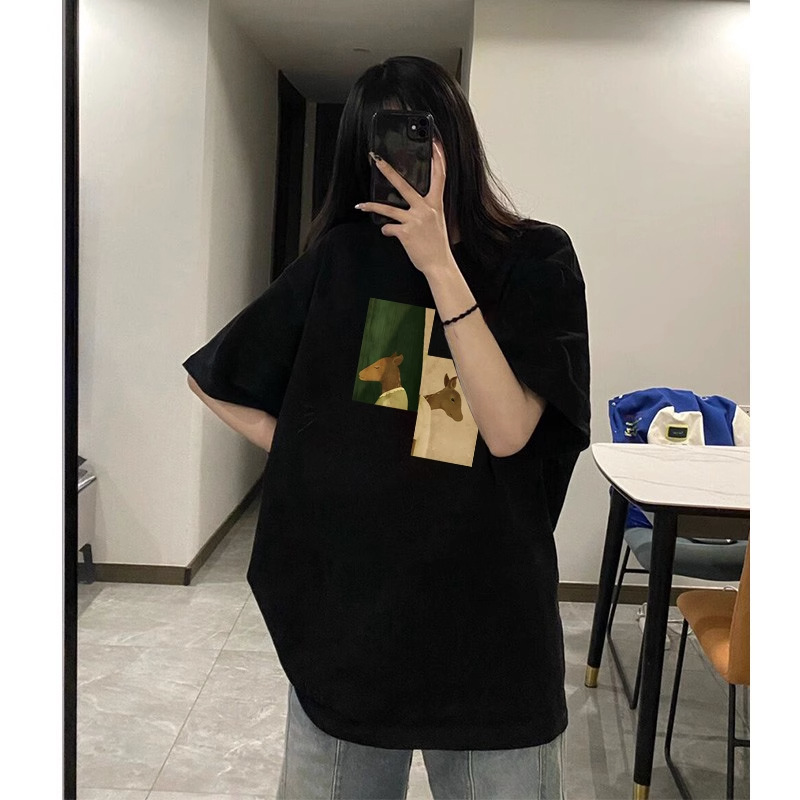 黑色纯棉短袖t恤女新款夏季宽松美式复古潮oversize半袖上衣