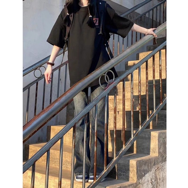 纯棉短袖t恤女夏季新款小个子美式复古oversize潮牌宽松半袖上衣