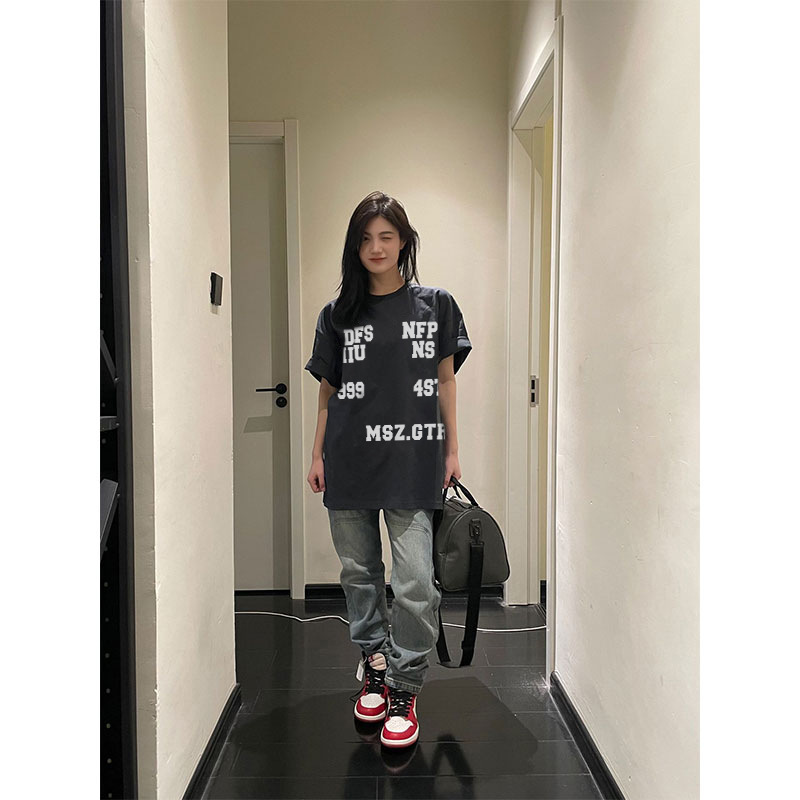 重磅纯棉短袖t恤女夏季新款潮牌小众设计感美式复古半袖上衣