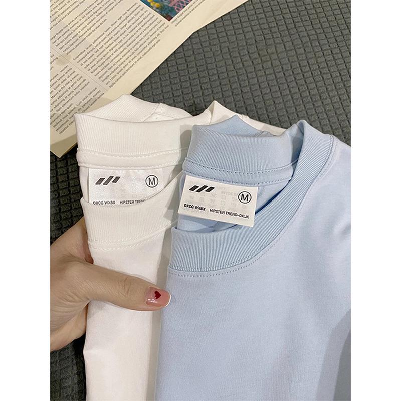 纯色半袖宽松上衣女新款夏季爆款洋气简约街头小众正肩t恤衫