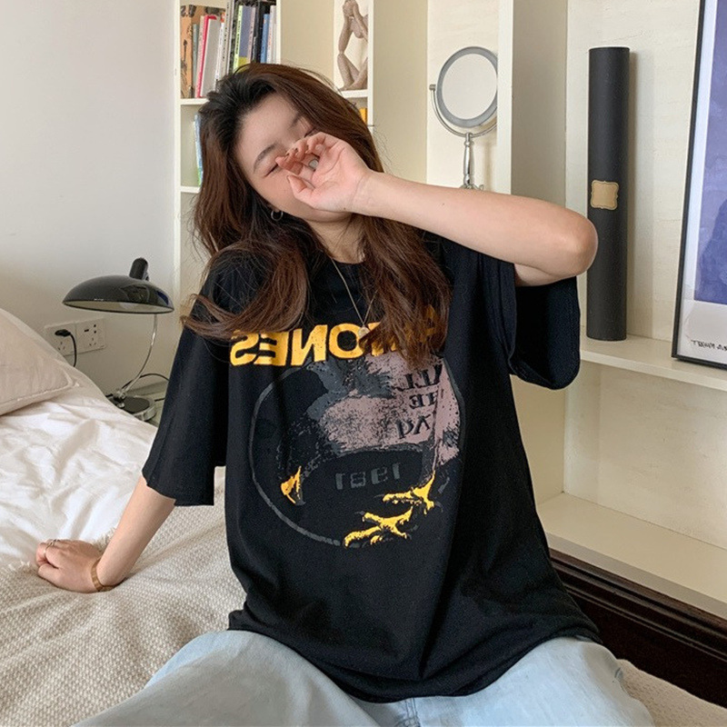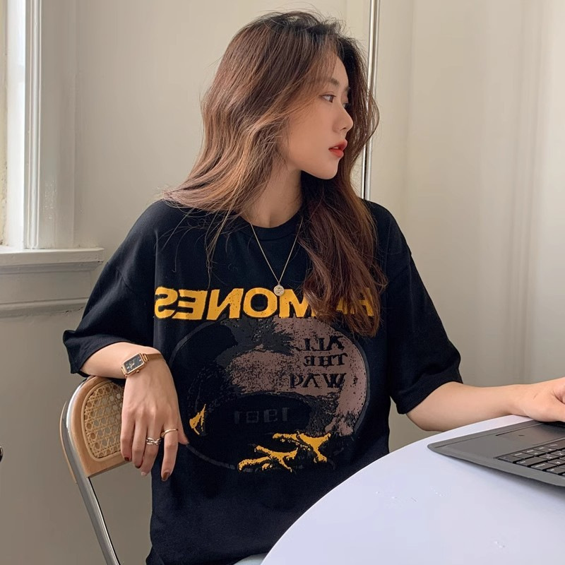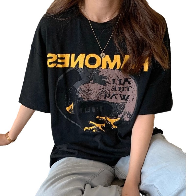 纯棉美式复古短袖t恤女春夏新款国潮设计感炸街宽松大码上衣