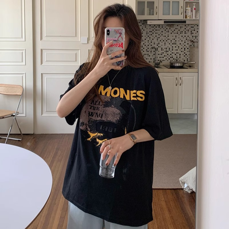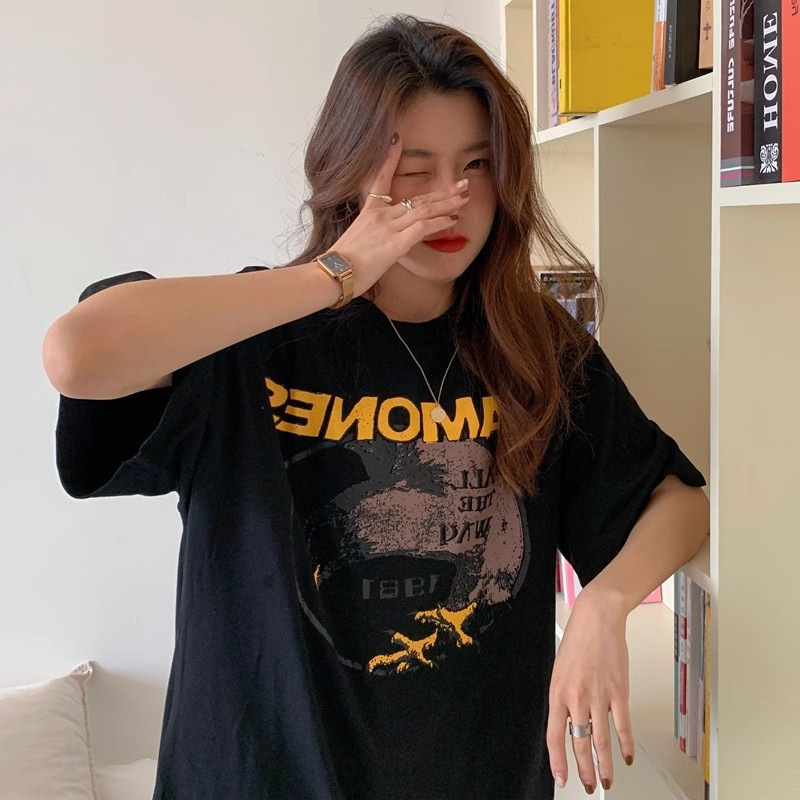夏季新款卡通字母印花休闲圆领短袖T恤男女宽松大码半袖DT280