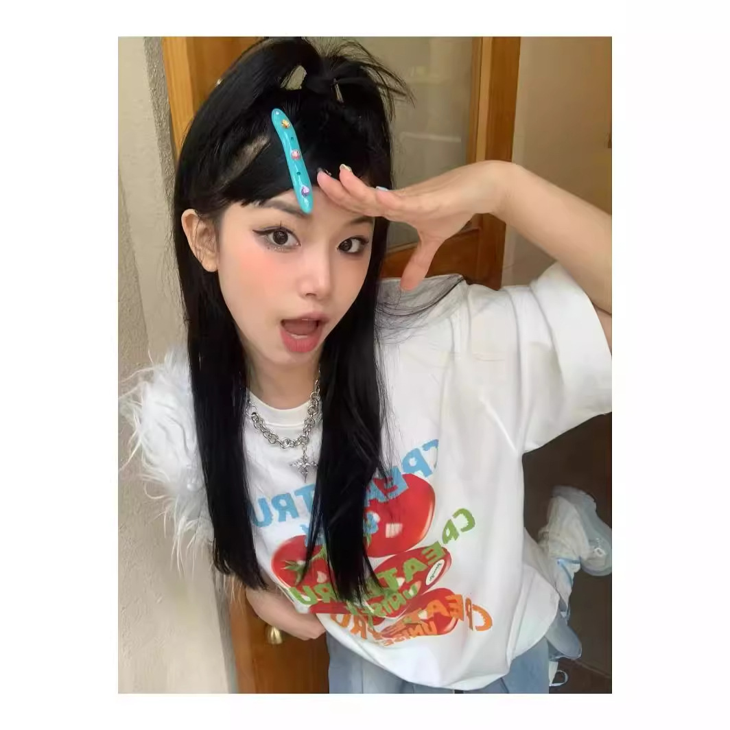 美式复古短袖t恤男女春夏季番茄印花白色半袖体恤纯棉情侣上衣潮