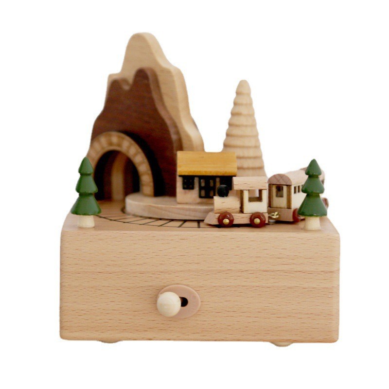 木质音乐盒创意diy旋转木马木制摆件儿童益智玩具生日礼物八音盒
