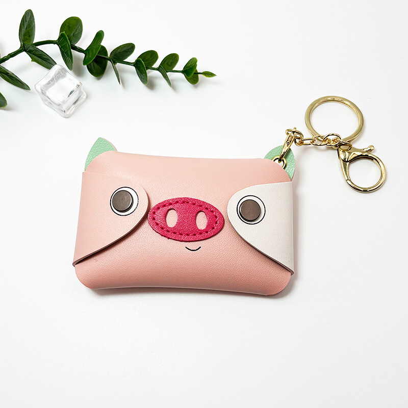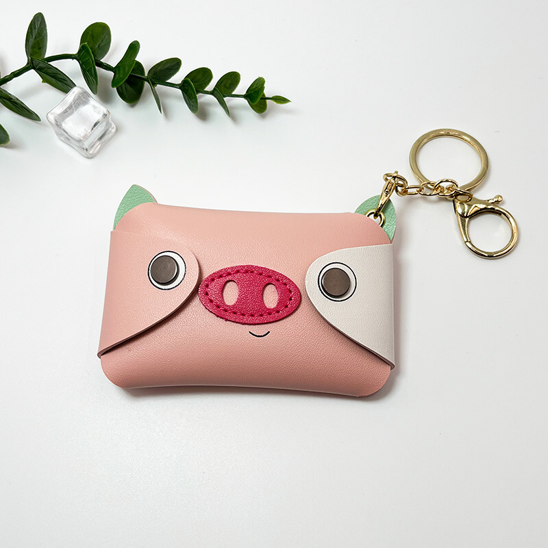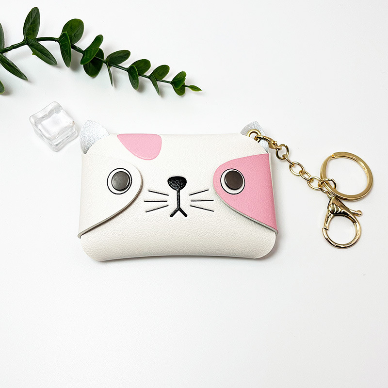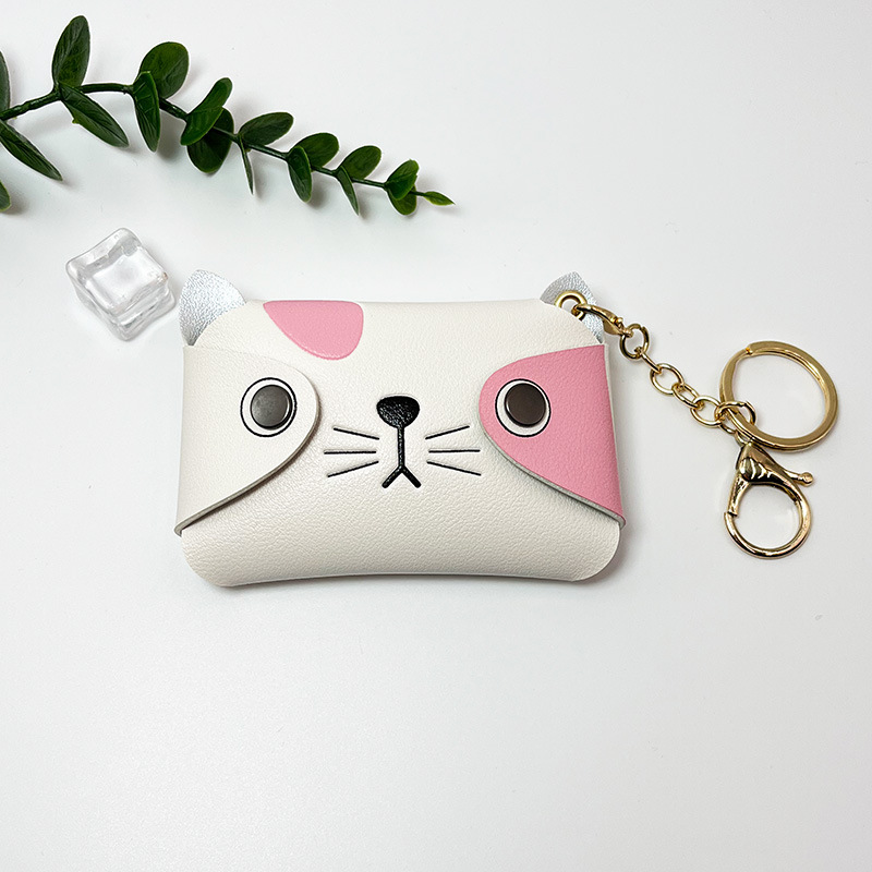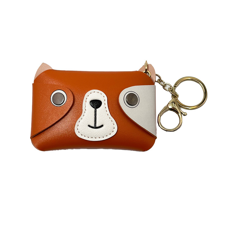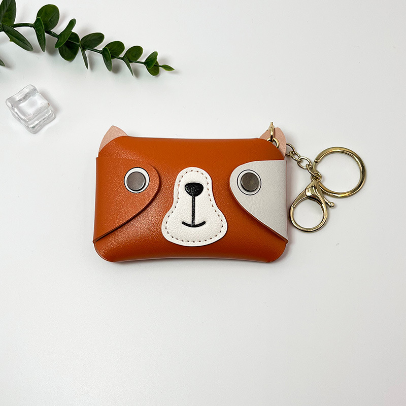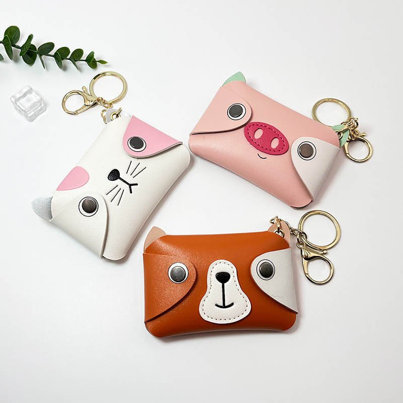 动物头钥匙包女可爱猫狗创意拼接皮质小包零钱包挂件