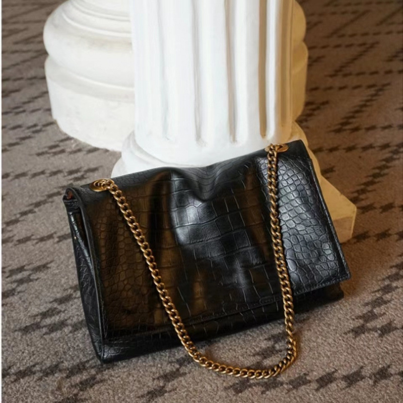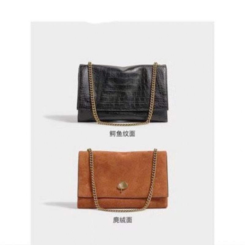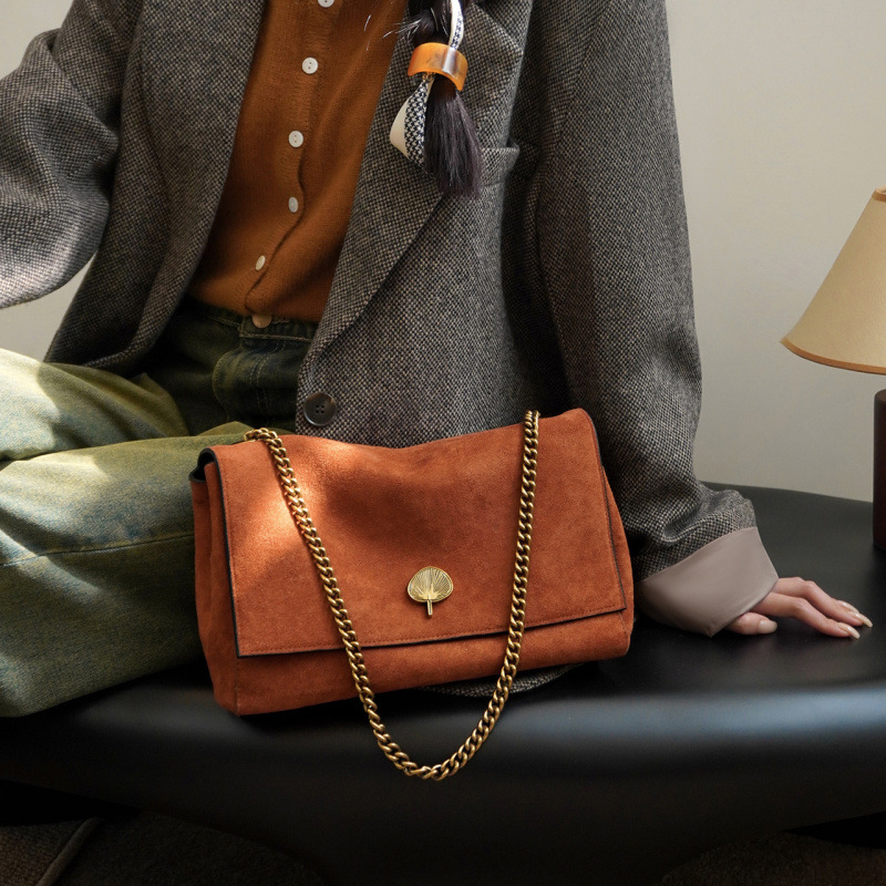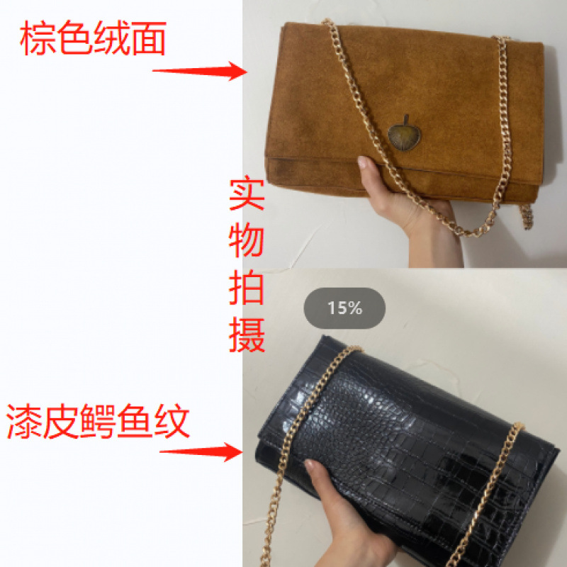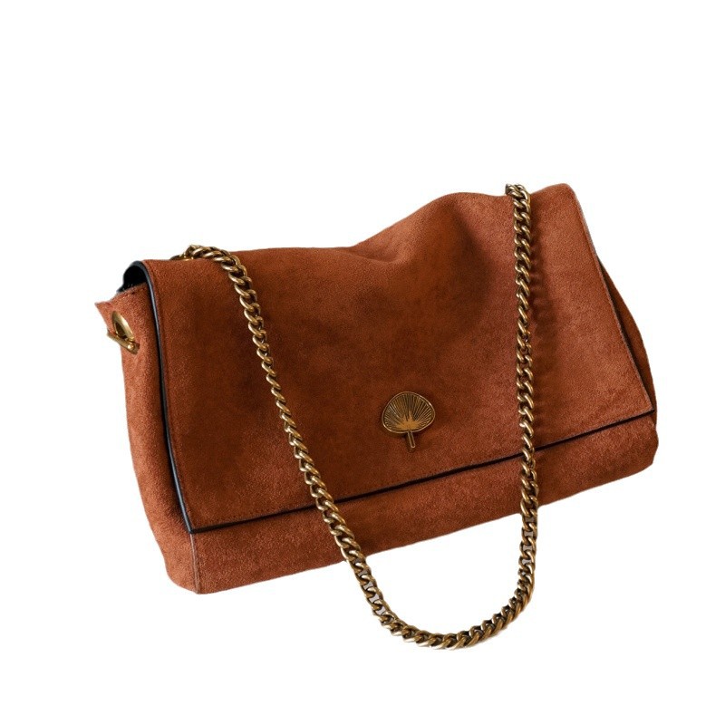晚杏双面背信封包包女新款棕色绒面链条女包单肩斜挎包