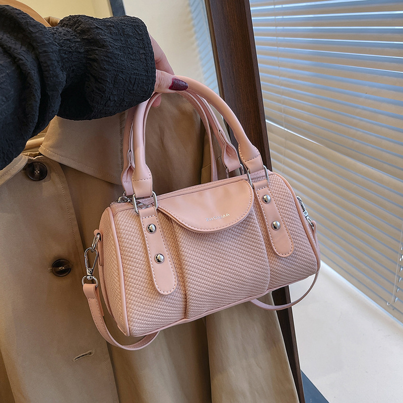 跨境小众手提包女2025新款百搭拼接亚麻布单肩枕头包波士顿斜挎包