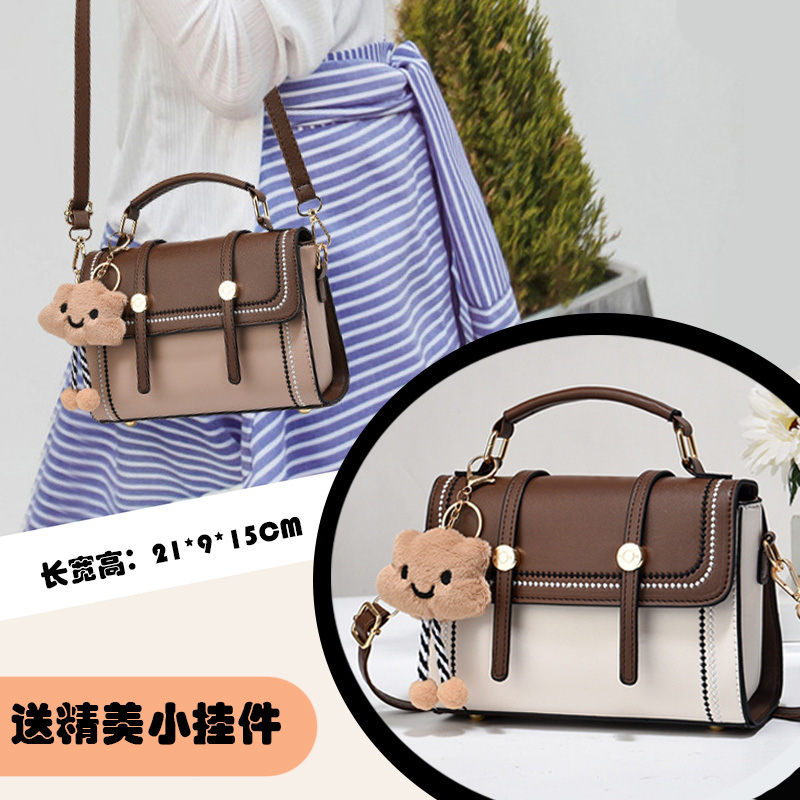 包包女士新款手提包撞色可爱斜挎包百搭简约小方包流行单肩包