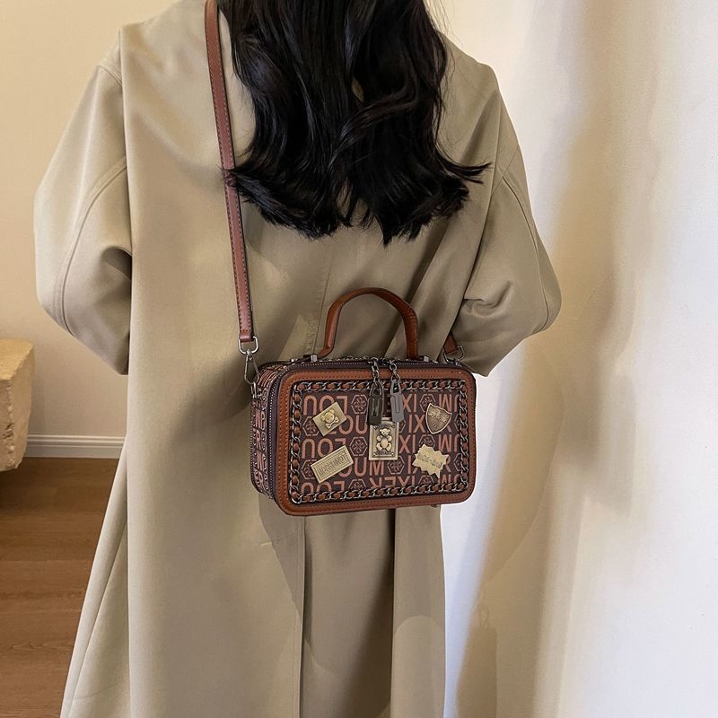 复古洋气手提小方包新款高级感链条斜挎包时尚百搭手提单肩包