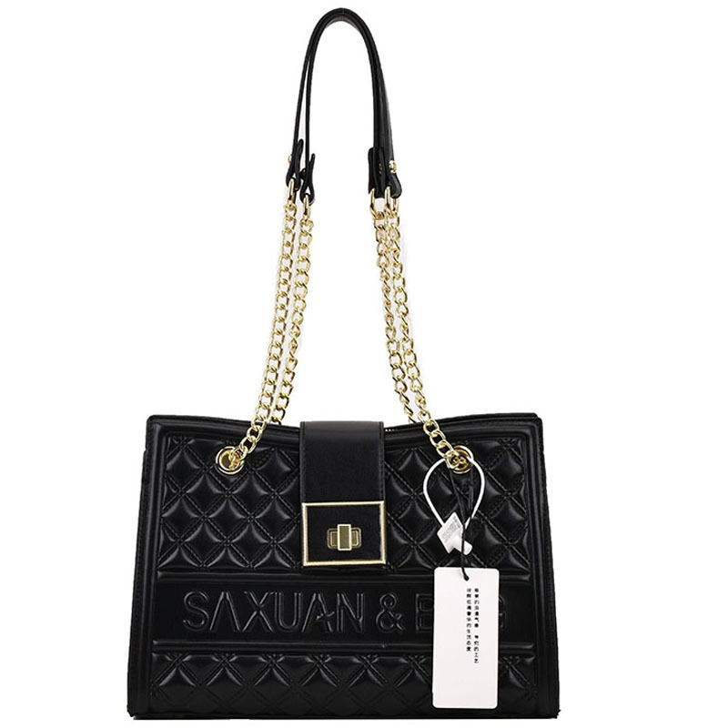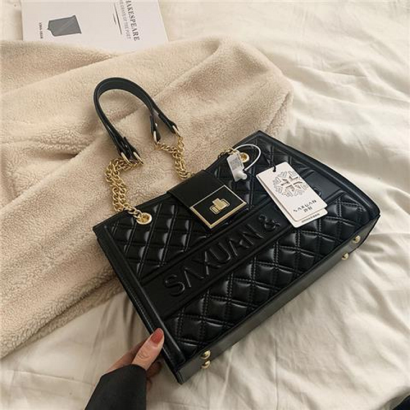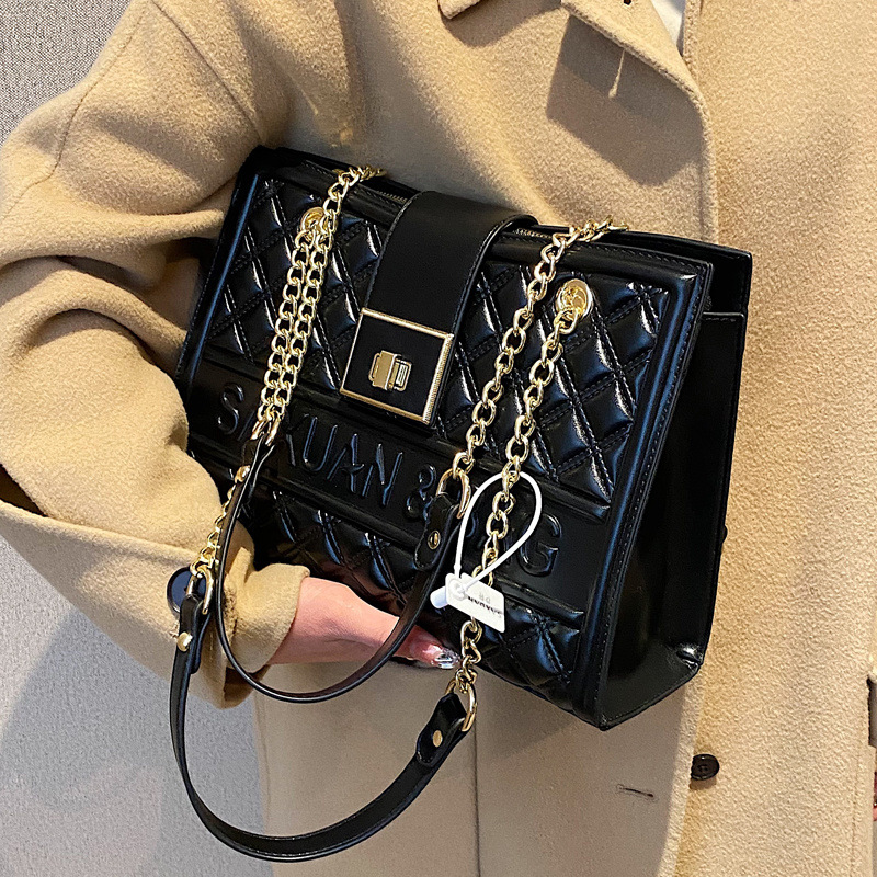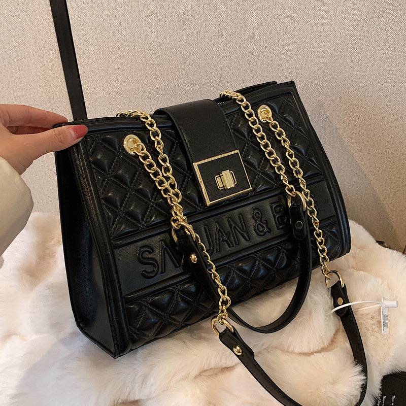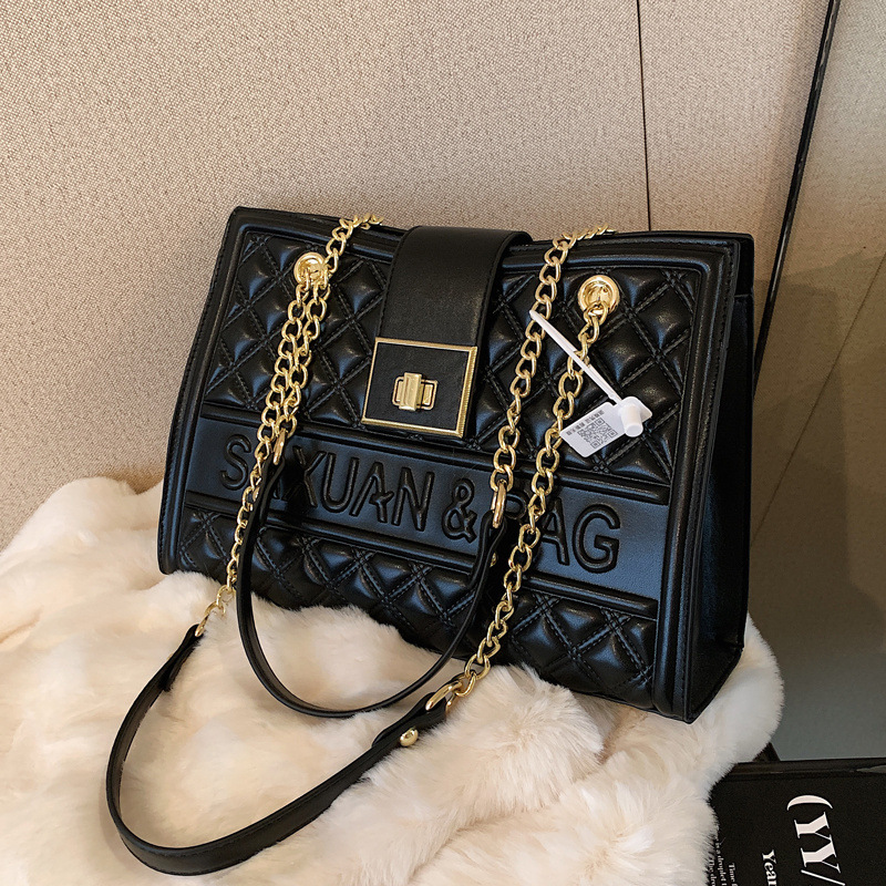 大容量ins包包女新款时尚高级菱格链条单肩包托特包硬底立体