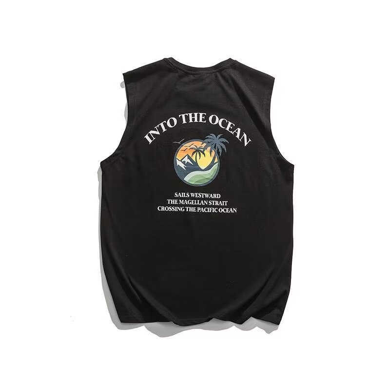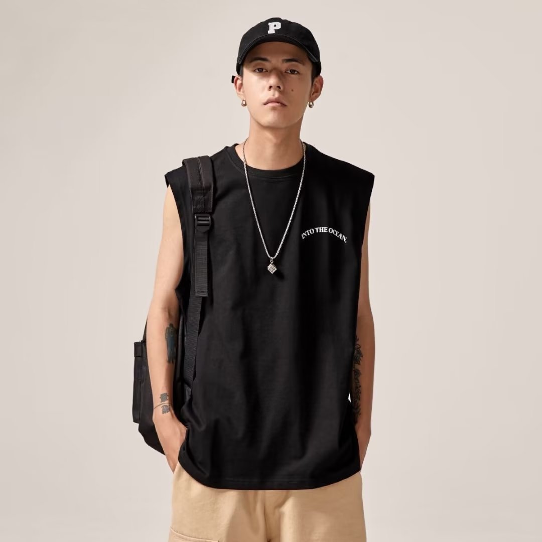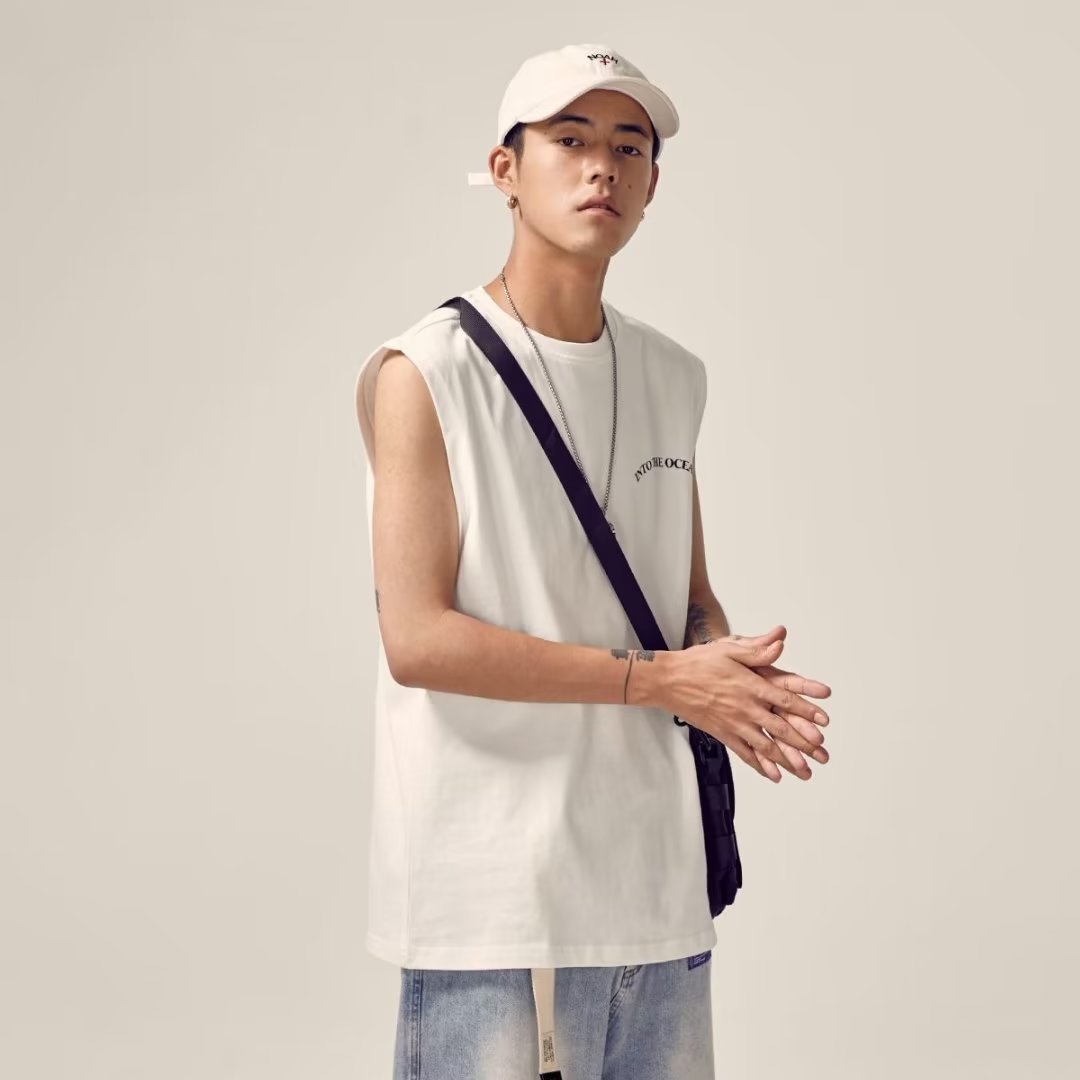夏季新款棉质无袖背心男设计感潮牌宽松坎肩背心潮流痞帅体恤上衣