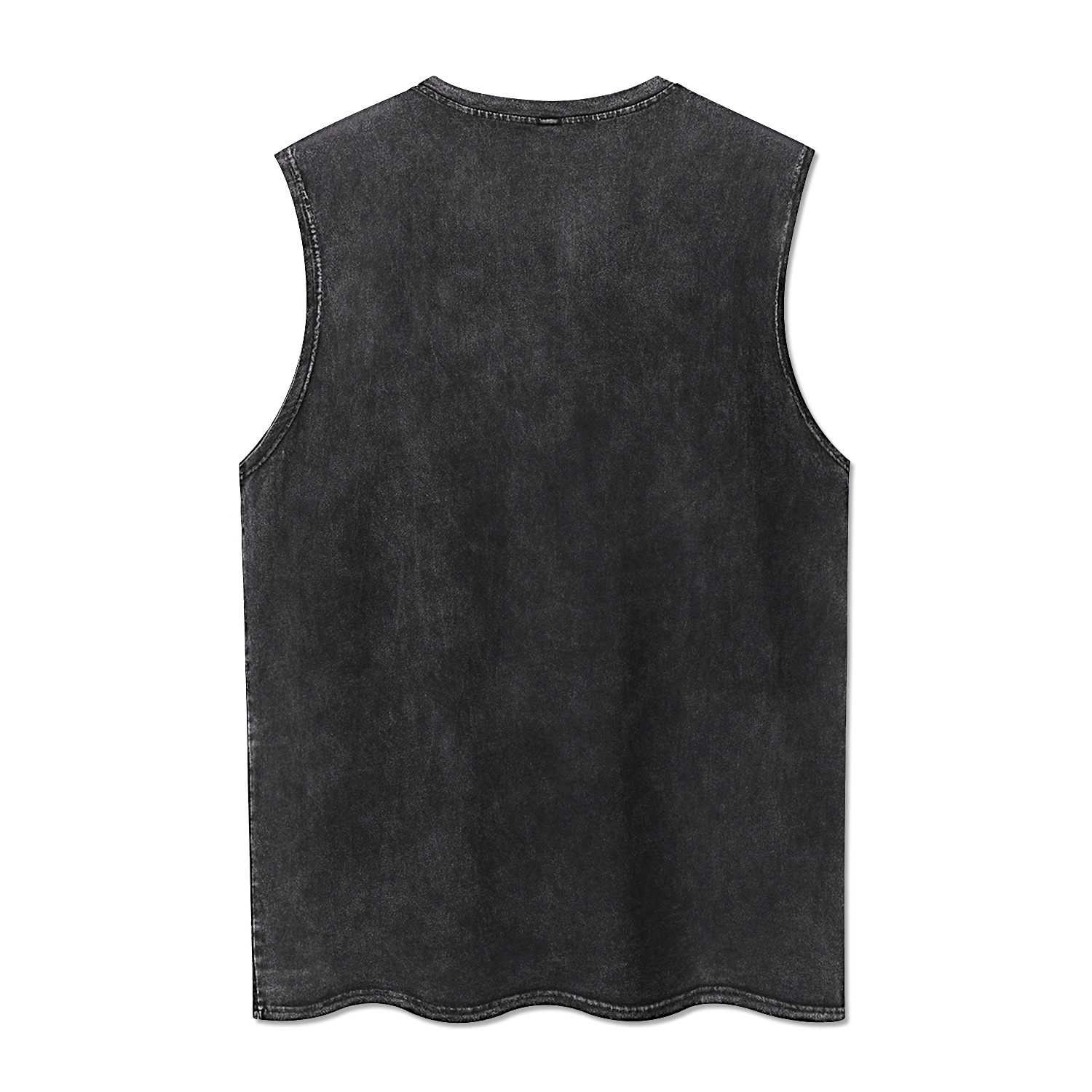 欧美高街复古洗水做旧背心男潮牌ins夏季宽松坎肩嘻哈潮流无袖t恤